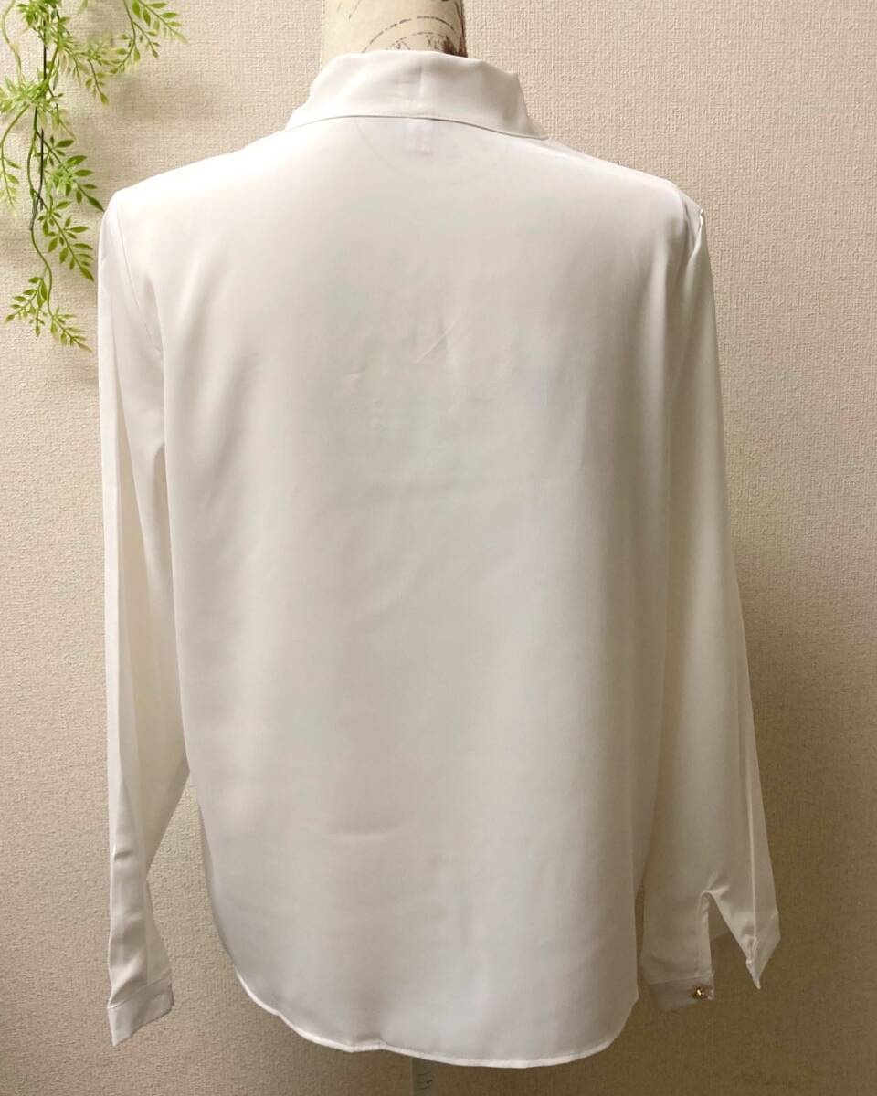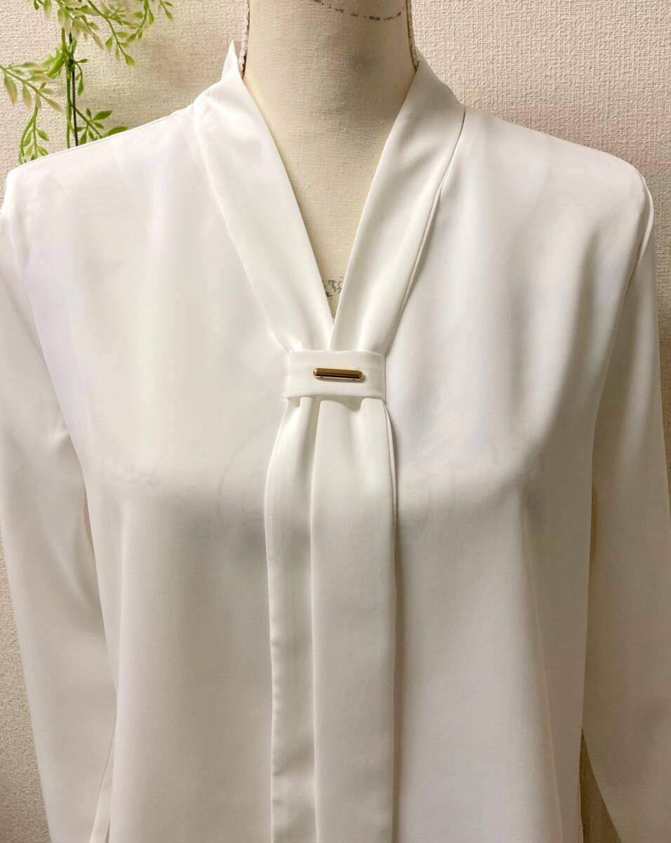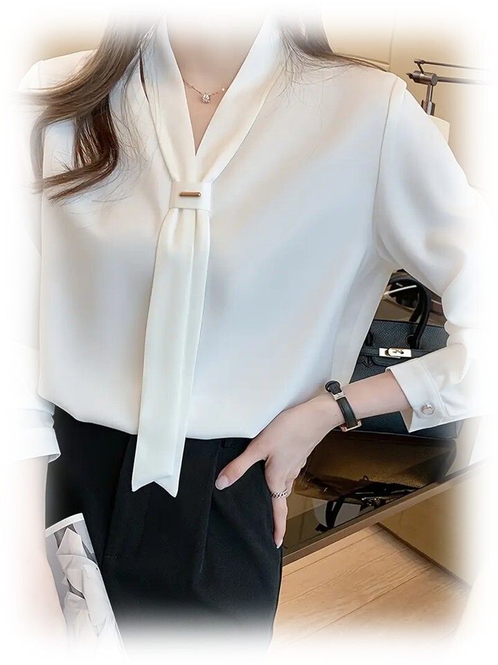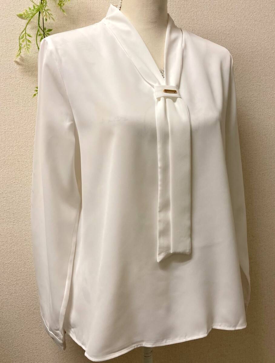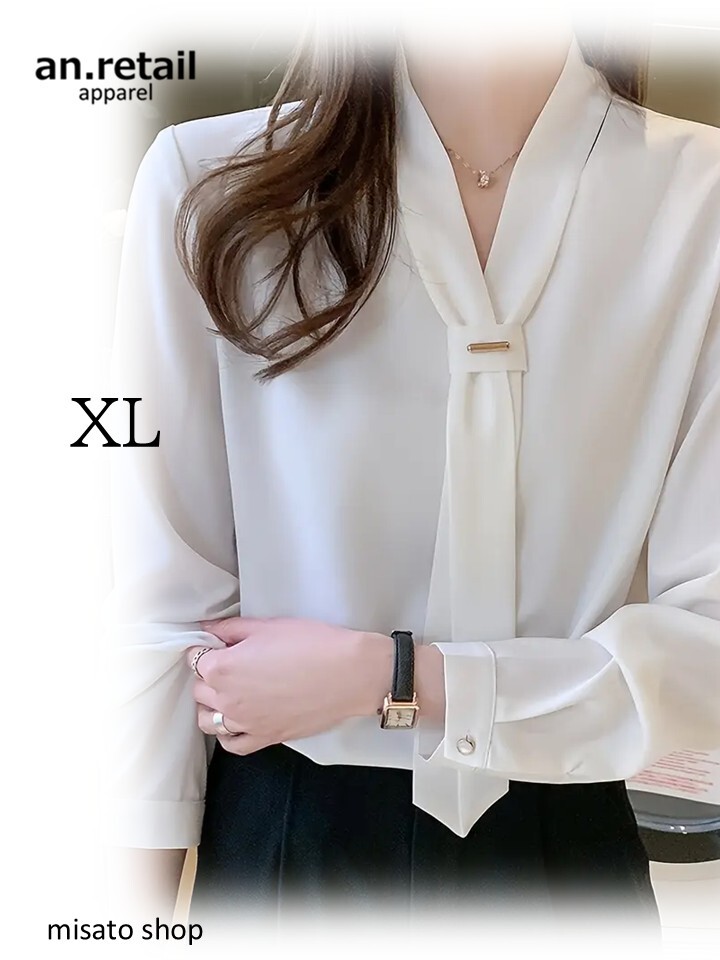 | ★レディース長袖ブラウス ホワイトシフォンブラウス Vネック&ボウタイデザイン XL | |||