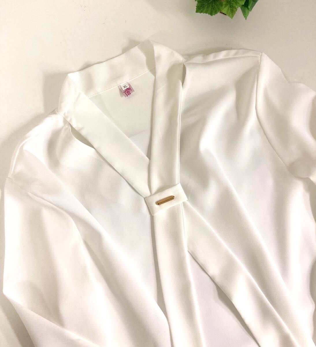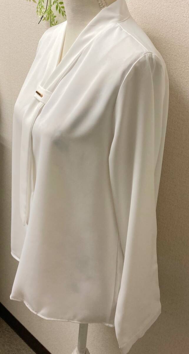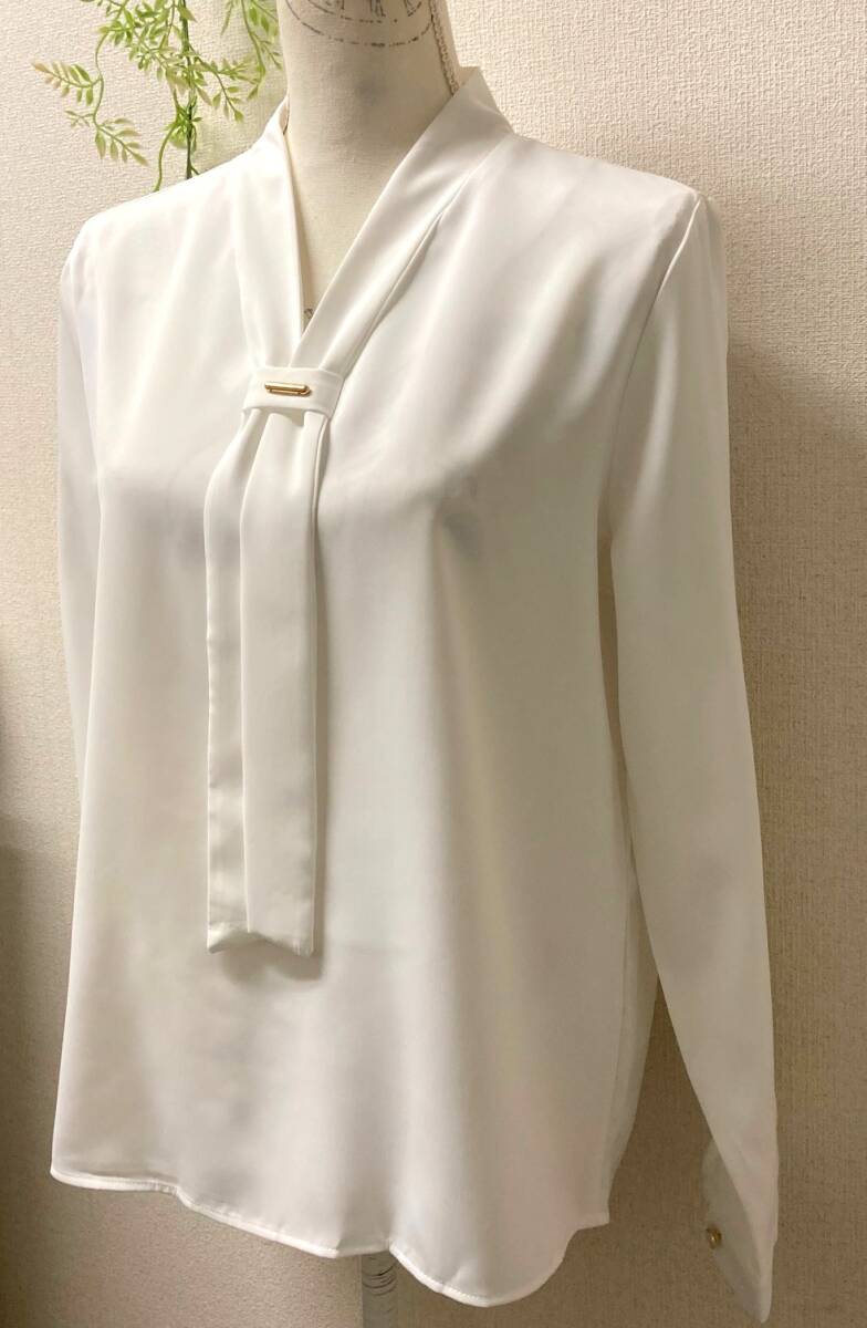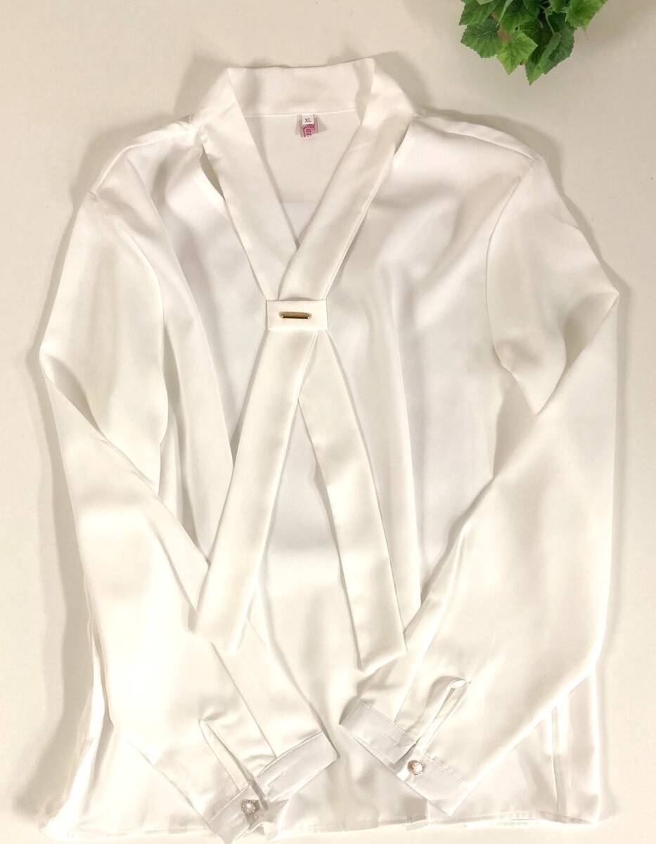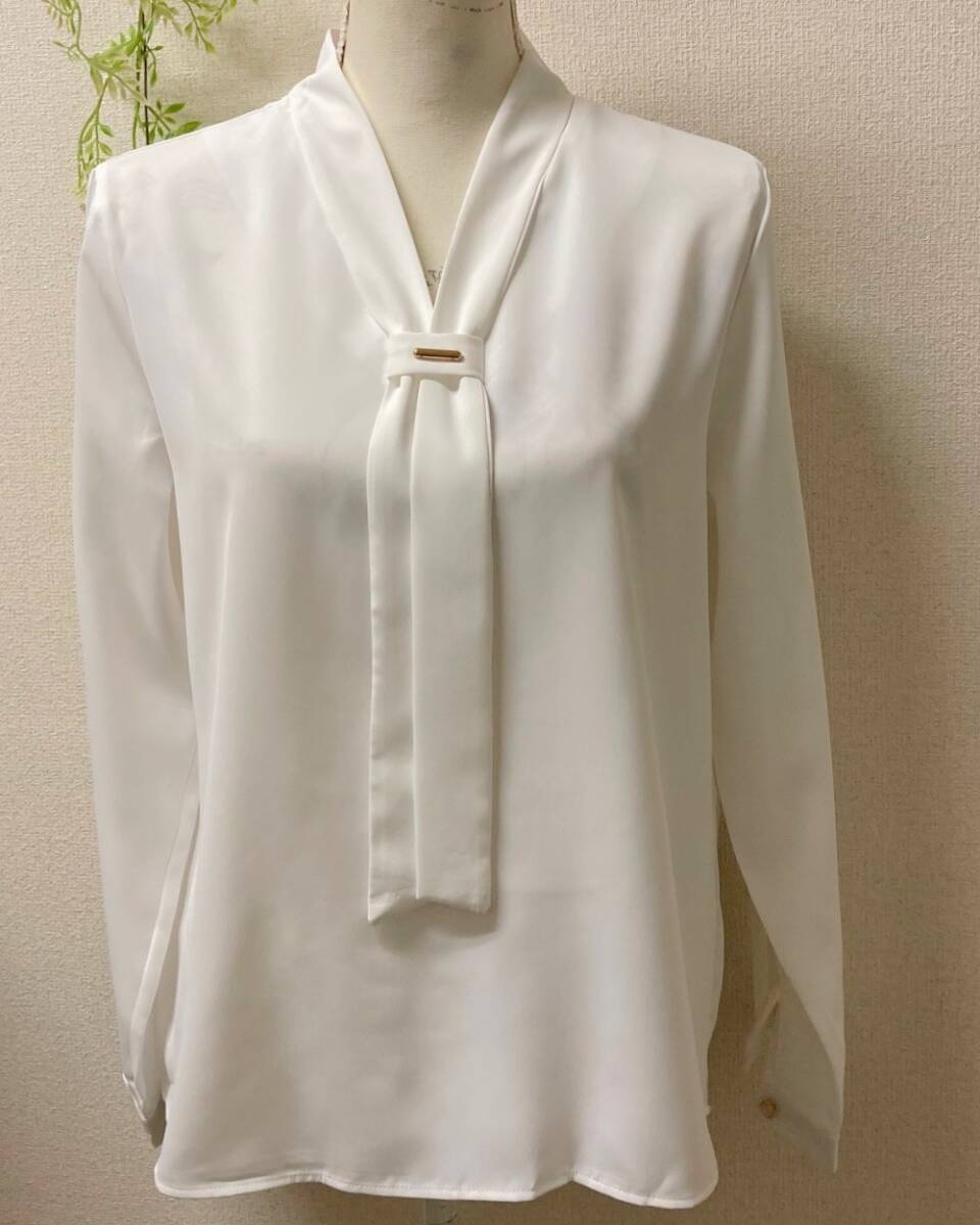 | ★レディース長袖ブラウス ホワイトシフォンブラウス Vネック&ボウタイデザイン XL | |||