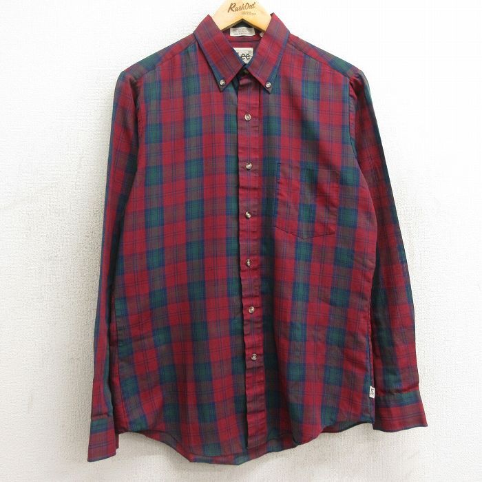 【商品名】 M★古着 リー Lee 長袖 ブランド シャツ メンズ 80年代 80s ボタンダウン 赤他 チェック