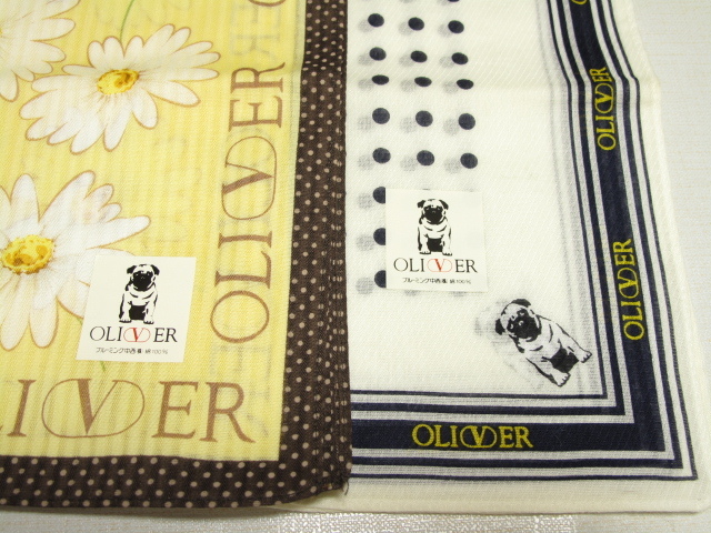 新品 4枚セット オリバー OLIVER パグ ハンカチ 綿100% ブルーミング中西