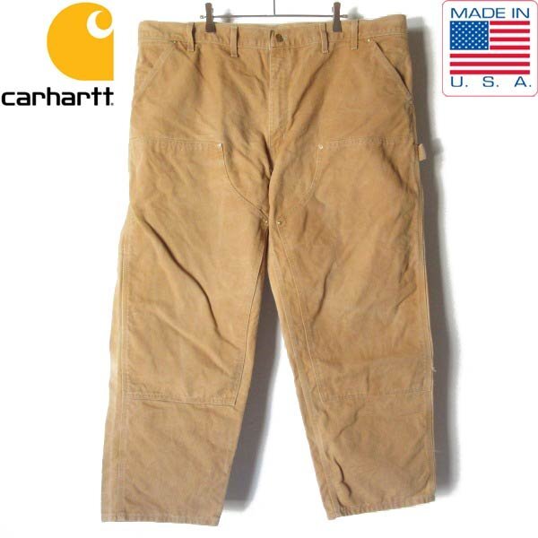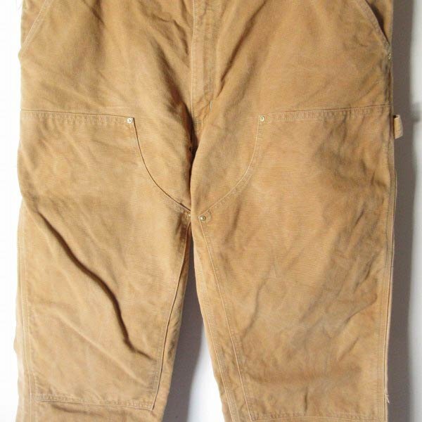 希少 80s USA製 carhartt ダック ダブルニー ペインターパンツ 46×30 フェード 茶系 カーハート アメリカ製 大きいサイズ D151