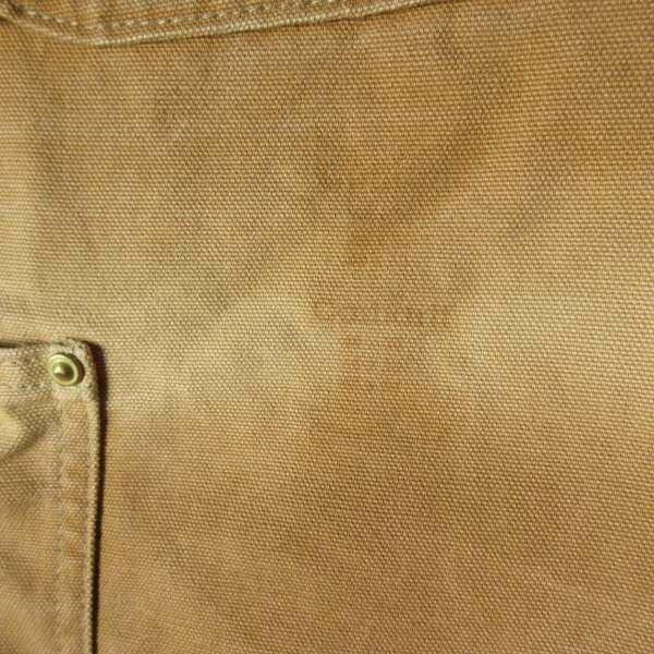 左腿裏側に当時の新品販売時のシールがヤケによって転写されたような箇所があり、Carharttのロゴが確認できる大変希少な個体です。