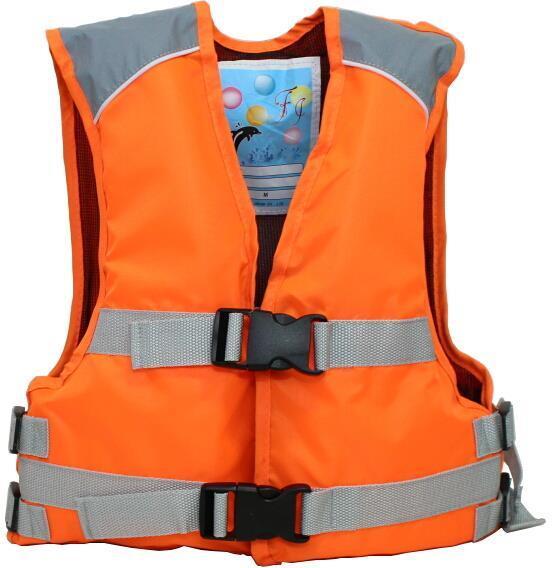 この商品のエナドットコムYahoo!ショッピング店での販売ページリンク L オレンジ 子供用 ライフジャケット シンプル&イージー ジュニアフローティングベスト ファインジャパン 笛付 FJ6161 |