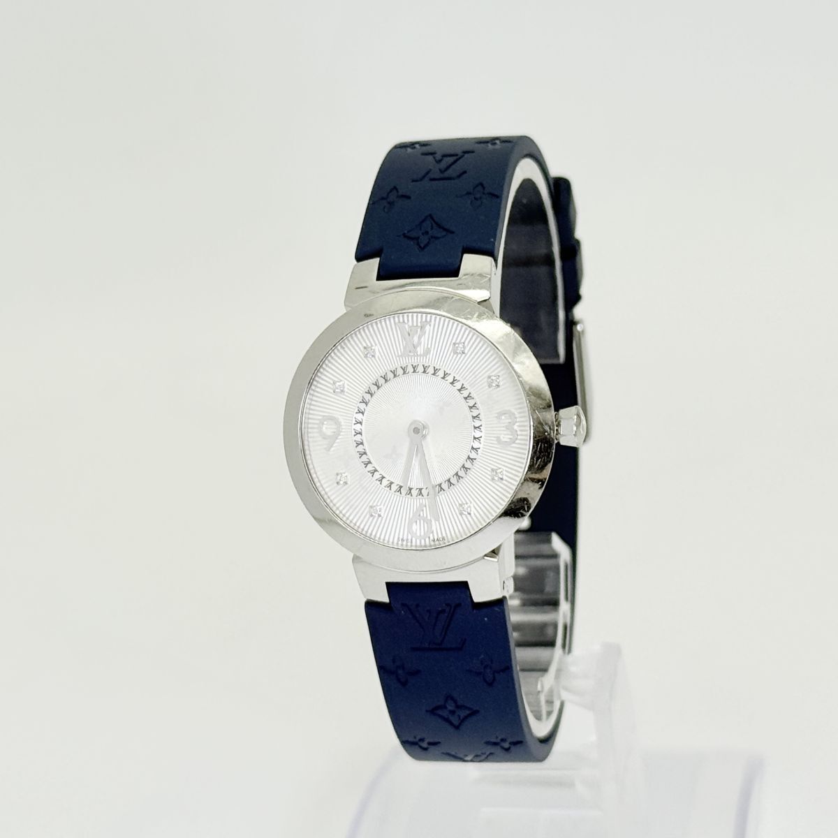 O7528 LOUIS VUITTON ルイ・ヴィトン タンブール スリム シルバー文字盤 8PD ラバー QZ Q12MG1 TD2934 稼働