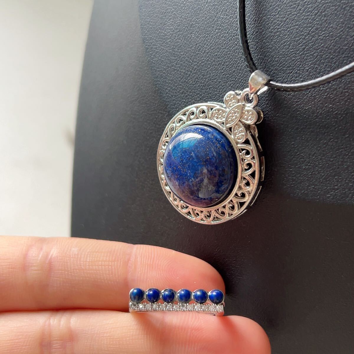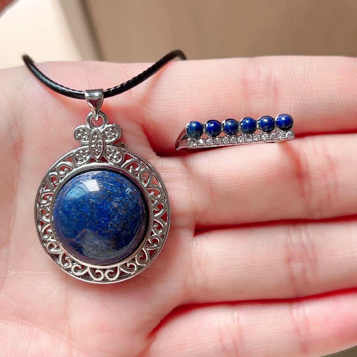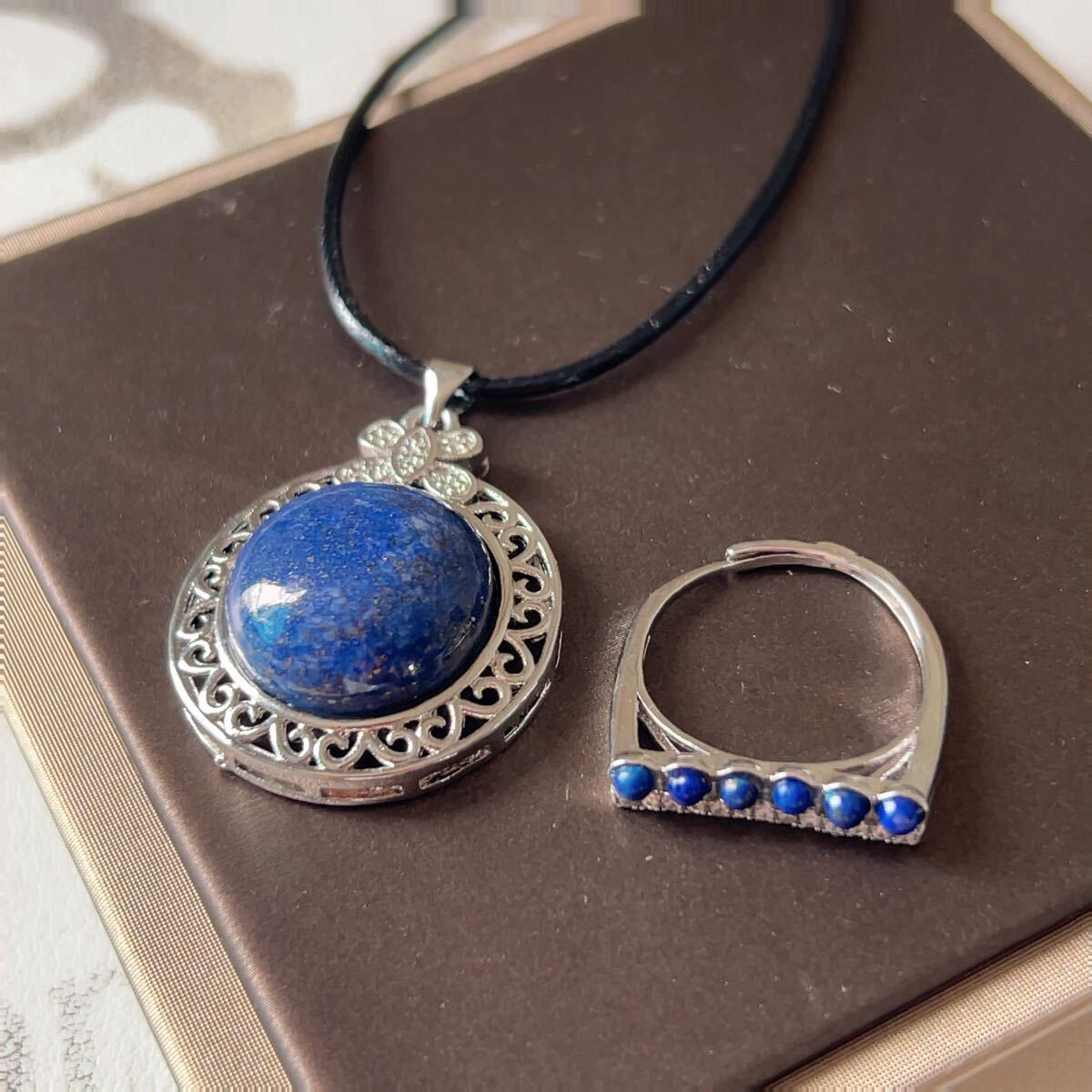 ◇ラピスラズリ◇ネックレス ペンダント+リング(指輪)計2点セット◇天然石◇パワーストーン◇プレゼントにも040S9425