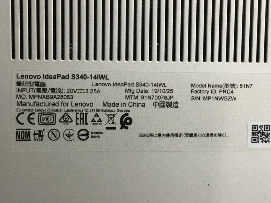 lenovo 81N70078JP IdeaPad S340-14IWL Core i7 8565U 1.80GHz■現状品