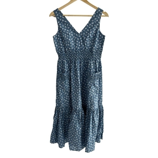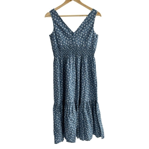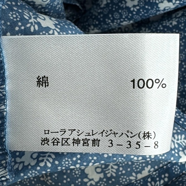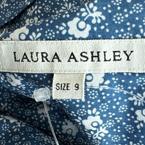 ローラアシュレイ LAURAASHLEY サイズ9 M - ブルー×白 レディース Vネック/ノースリーブ/ひざ丈/花柄 美品 ワンピース