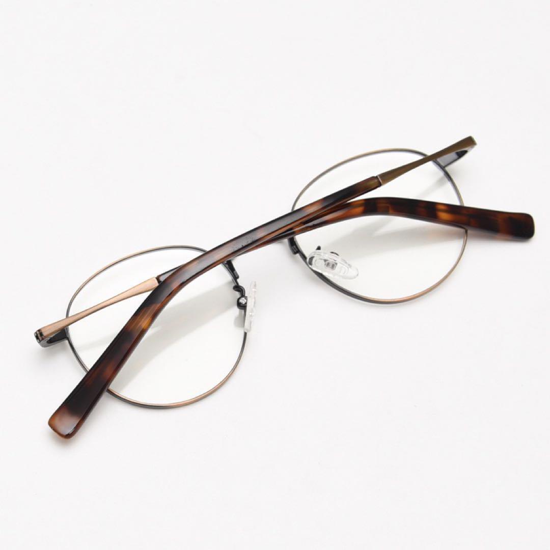 テンプル(つる)部分はクラシックな鼈甲柄(べっこうがら)で仕上げられており、レトロモダンな雰囲気が魅力。