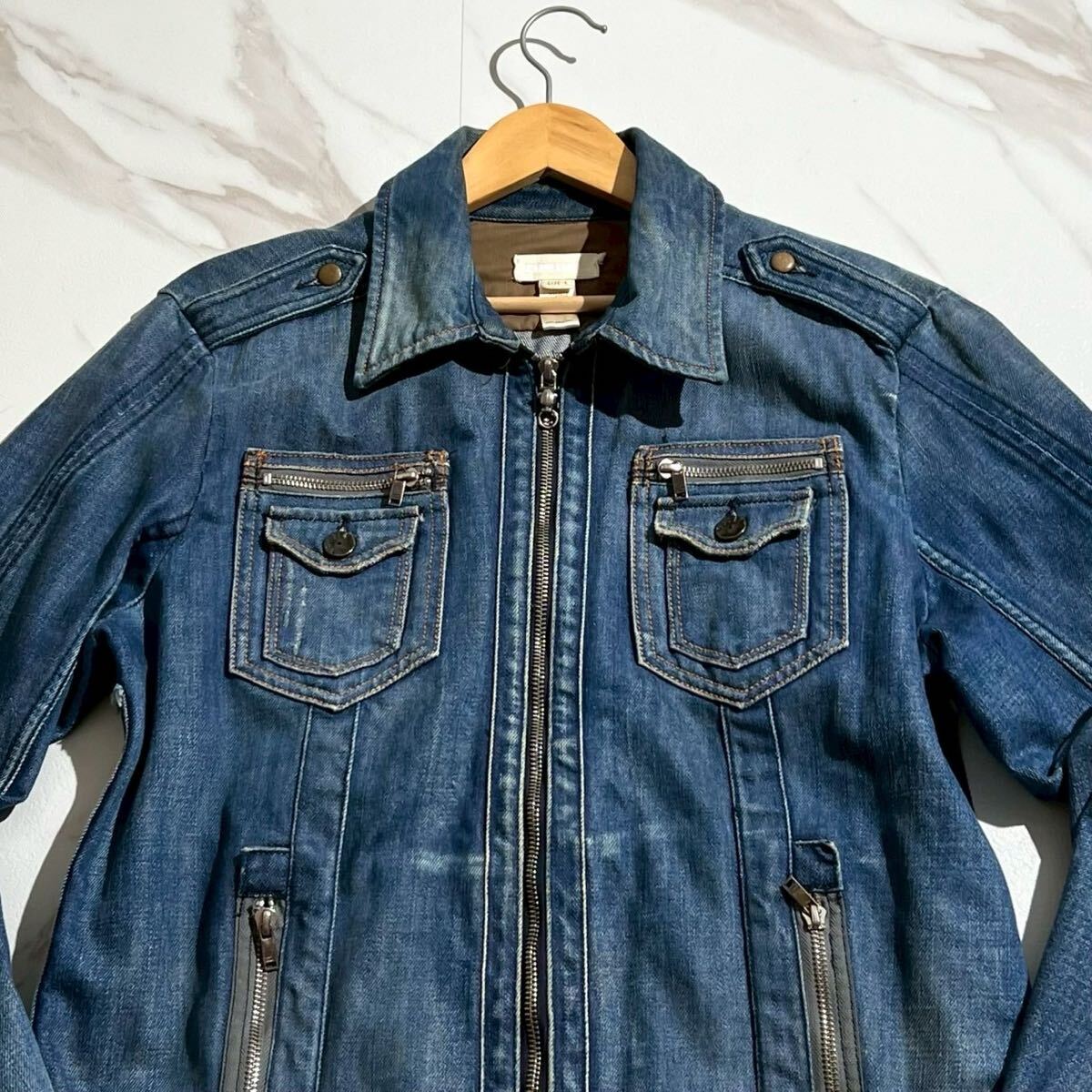 美品/Lサイズ●DIESEL ディーゼル デニムジャケット ジージャン Gジャン ジップアップ ブルゾン ストレッチ メンズ インディゴブルー