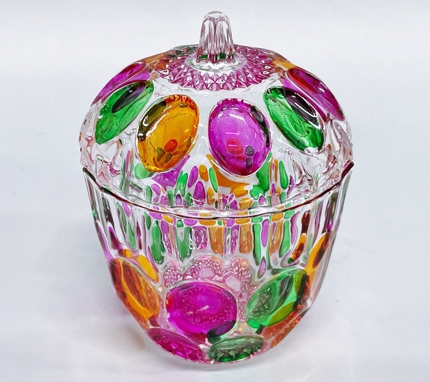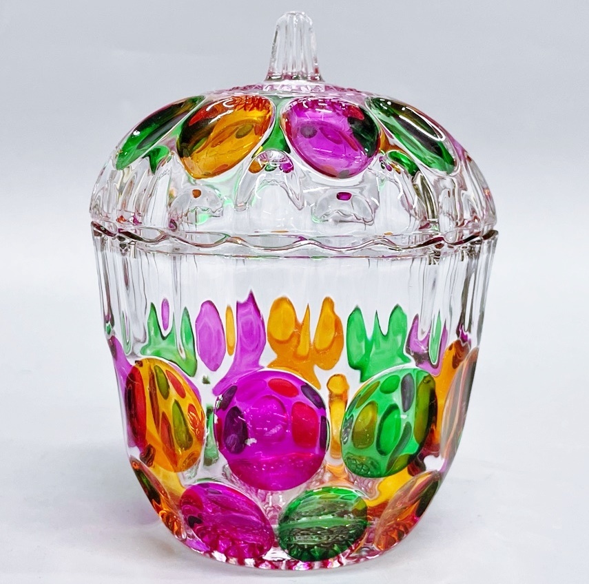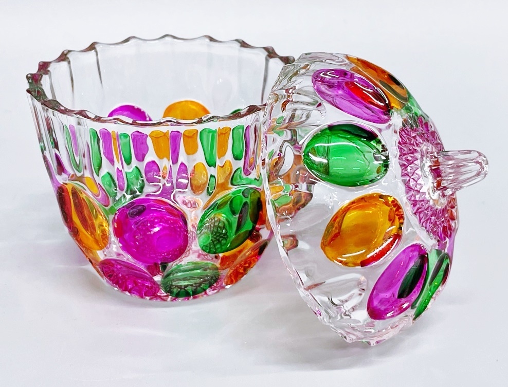ガラス製 キャンディーポット 小物入れ ボンボニエール カラフル 蓋物 シュガーポット キャニスター アクセサリー収納