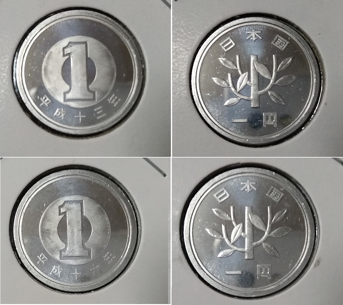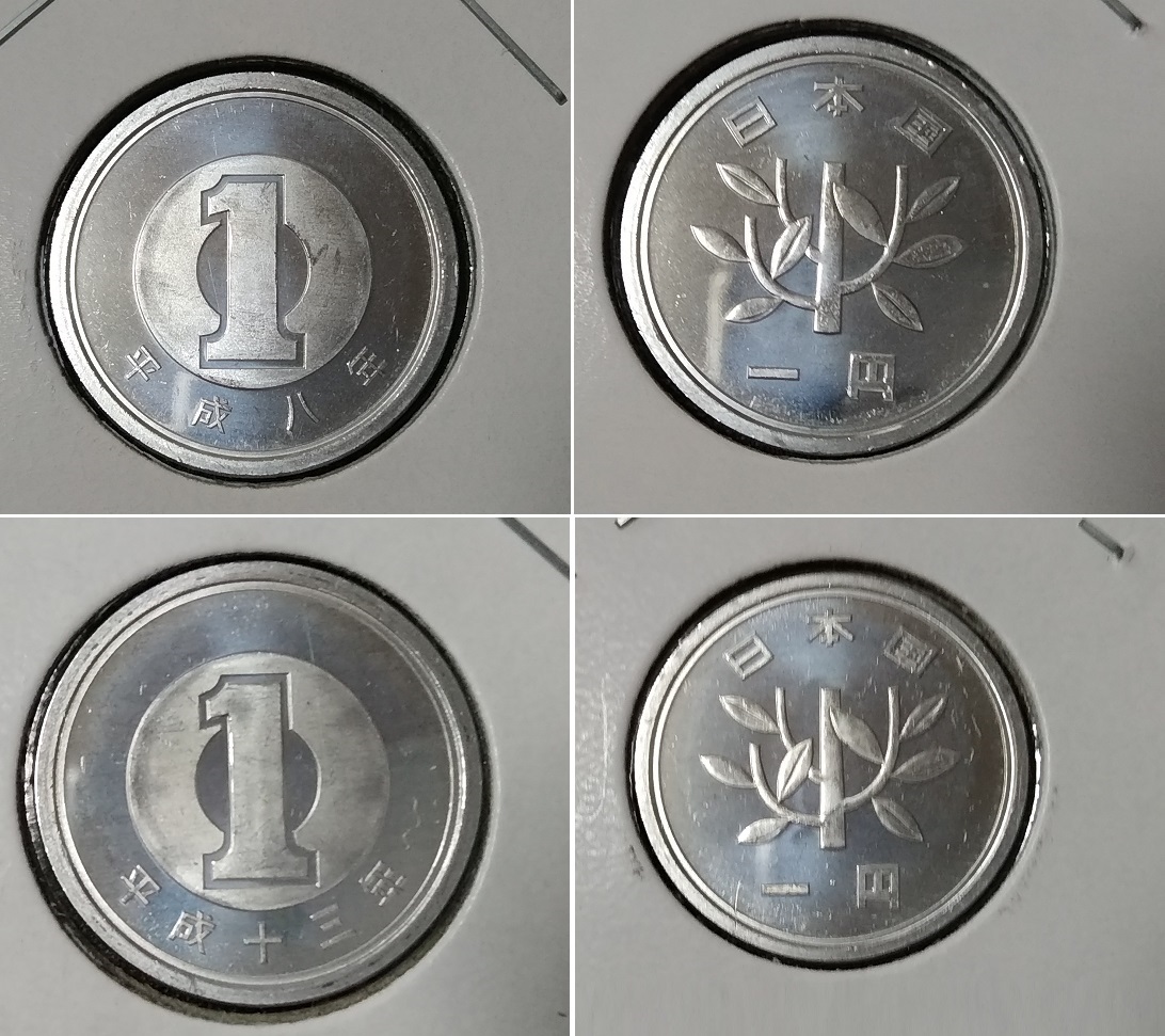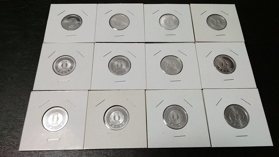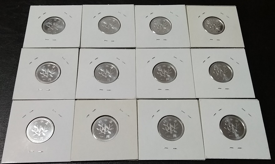 ☆【平成硬貨・未使用貨幣】平成8年・平成13年・平成16年・平成17年・平成19年 1円 アルミ貨 一円 12枚/ミント出し コインホルダー入り☆ | |||