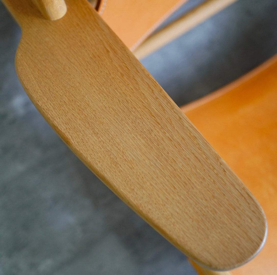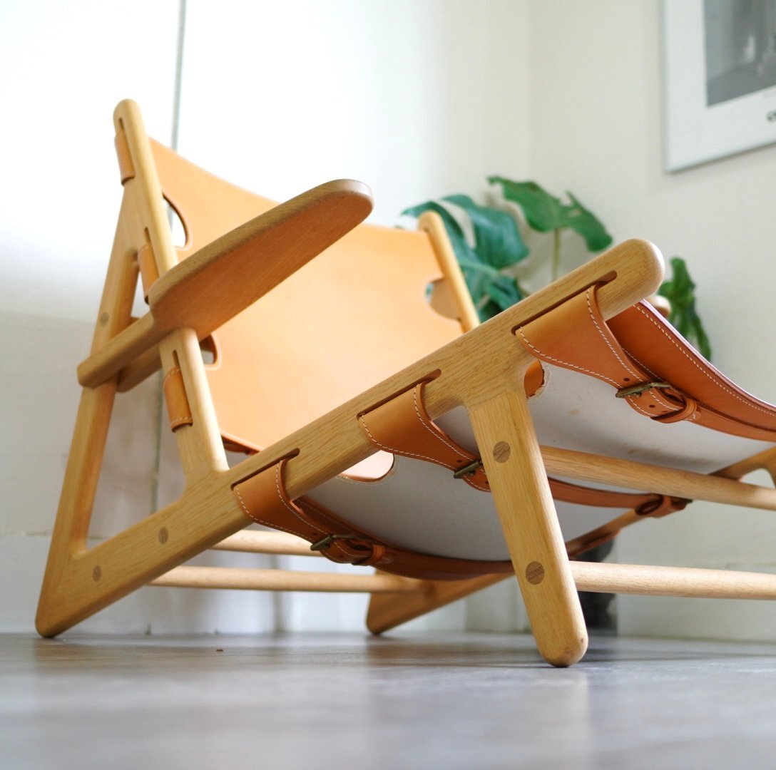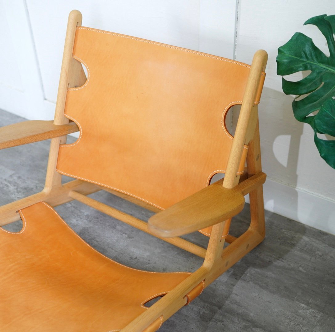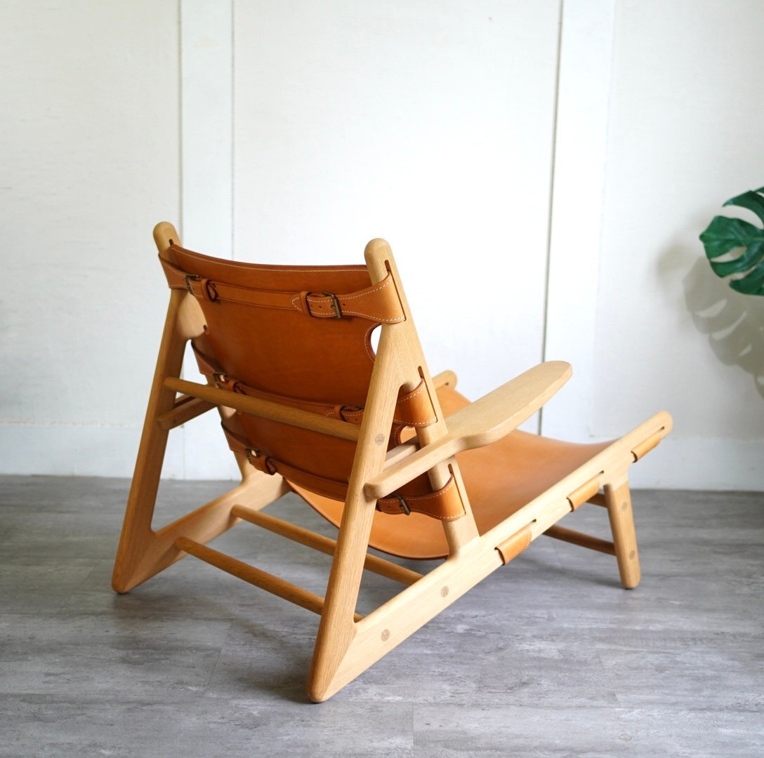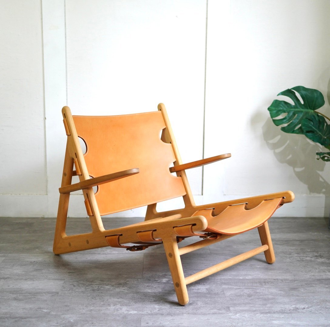 1950年、コペンハーゲンキャビネットメーカーギルドの展覧会「Hunting Lodge」がテーマとなり、そのためにデザインされたチェアで、後に製品化されました。モーエンセンはこのテーマで、山小屋のような環境に合うロースタイルでタフかつ素朴な家具をデザイン。ハンティングチェアはその代表的なチェアです。
