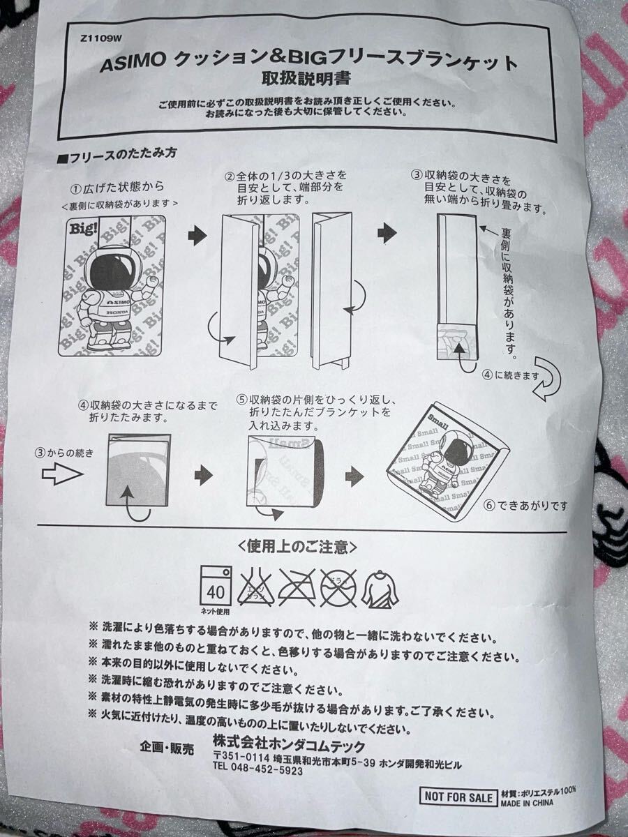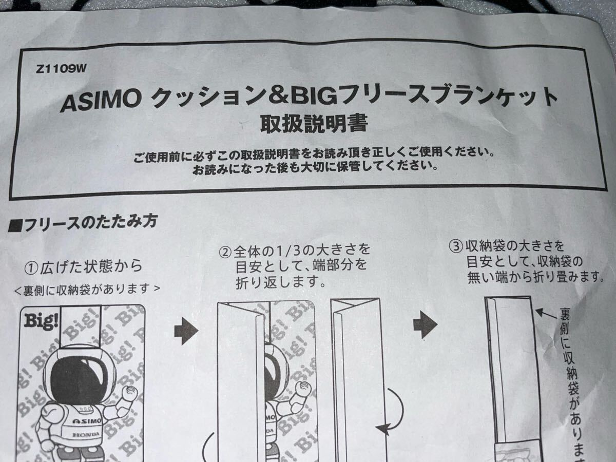 HONDA ◆ASIMO アシモ クッション & BIGフリースブランケット