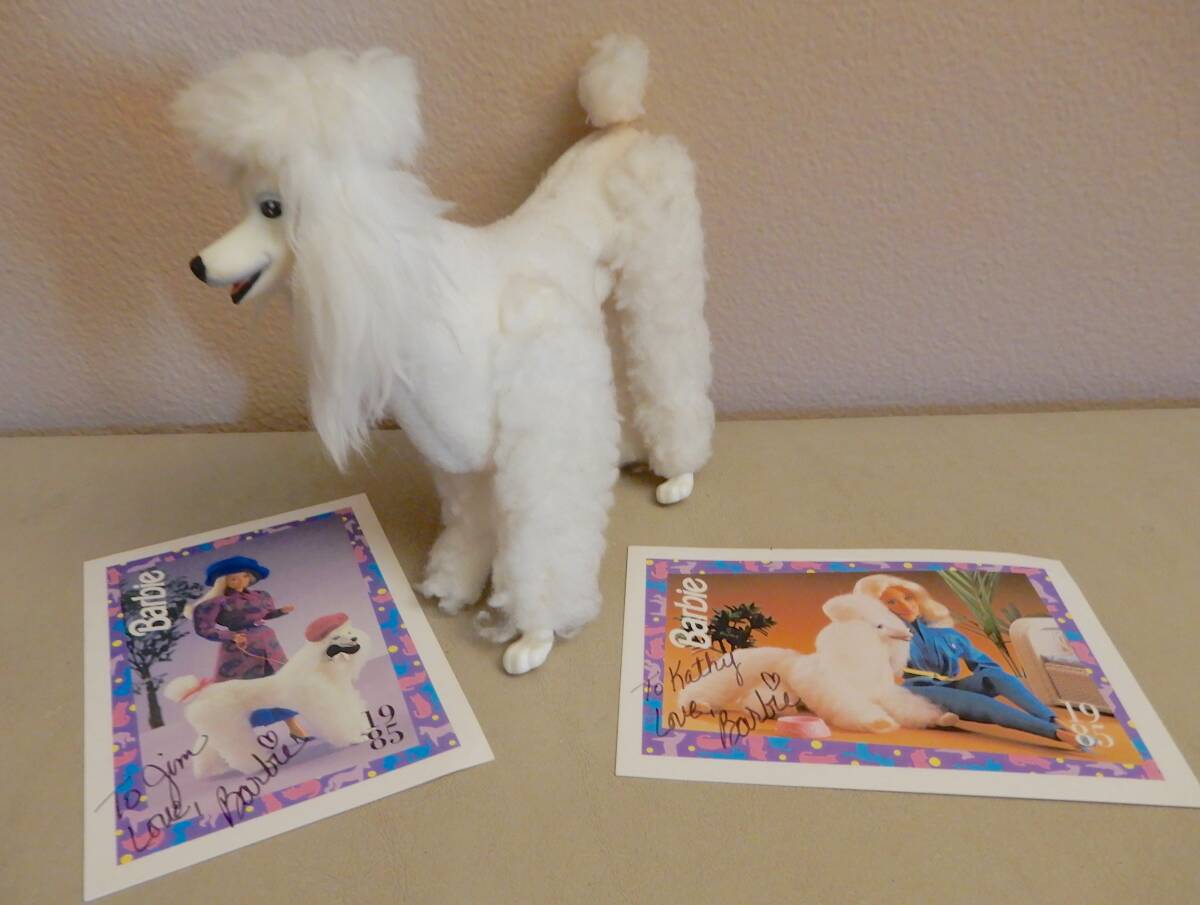 1991年のバービーのトレエーディングカードの中の「プードル犬/Prince(プリンス)」のカード2枚です。(サインがしてありますが、もともと、このカードは長年のバービー人形のコレクターさんのもので、コンベンション(インターネットのない時代はコレクタブルなものの情報交換やトレーディング(売り買い)はコンベンションが主流だったそうです)の際にサインをもらったようです。