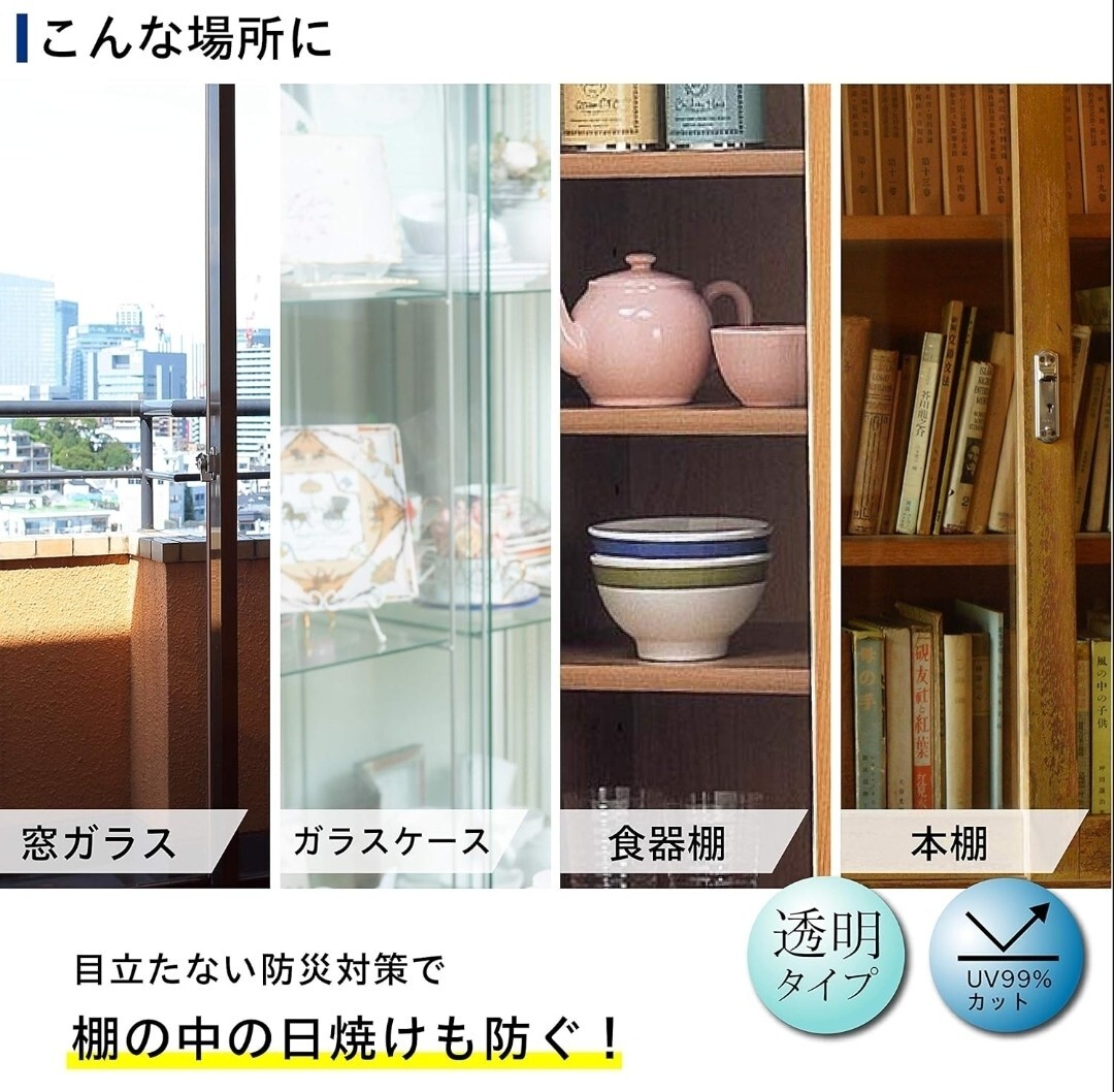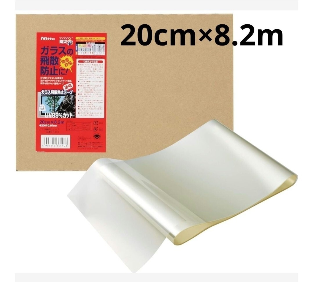 ニトムズ ガラス飛散防止テープ 透明 UV99%カット 災害 地震 台風 防災 本棚 家具 幅20cm×長さ8.2m 透明 1枚入