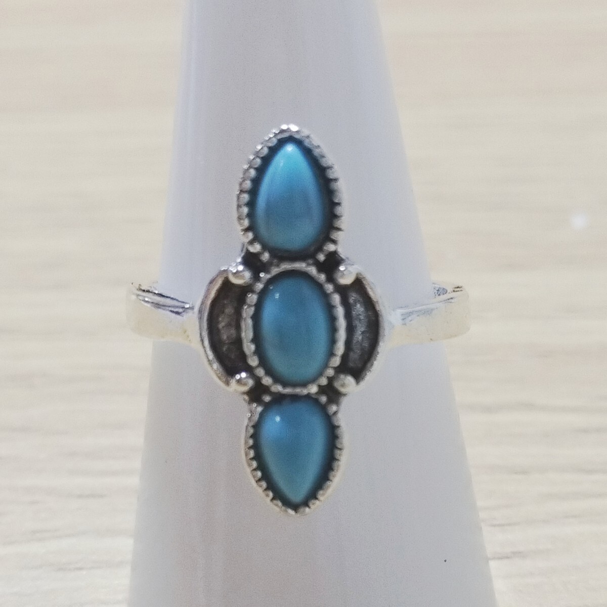フェイク ターコイズ リング ビーズ シルバー 指輪 メンズ レディース 個性的 17号