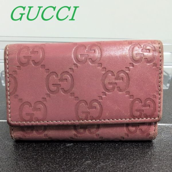 グッチ 6連 キーケース ピンク GUCCI グッチシマ GG マイクロ 本革 皮 マーモント スプリーム レディース メンズ g117