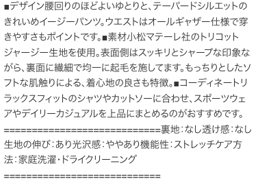 スウェットのようなパンツで外出はもちろんワンマイルウエアとして家でも履けます