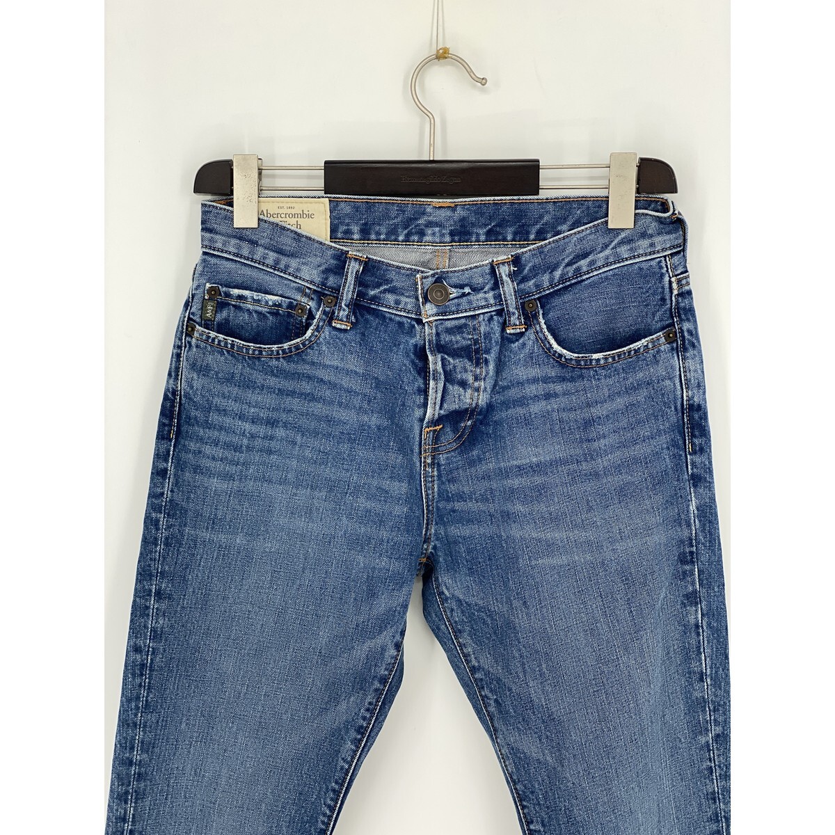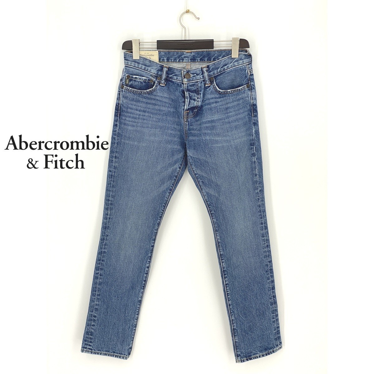 B0613/美品 Abercrombie&Fitch アバクロンビー&フィッチ コットン ボタンフライ テーパード デニムパンツ W30×L30 Mインディゴ 青 メンズ