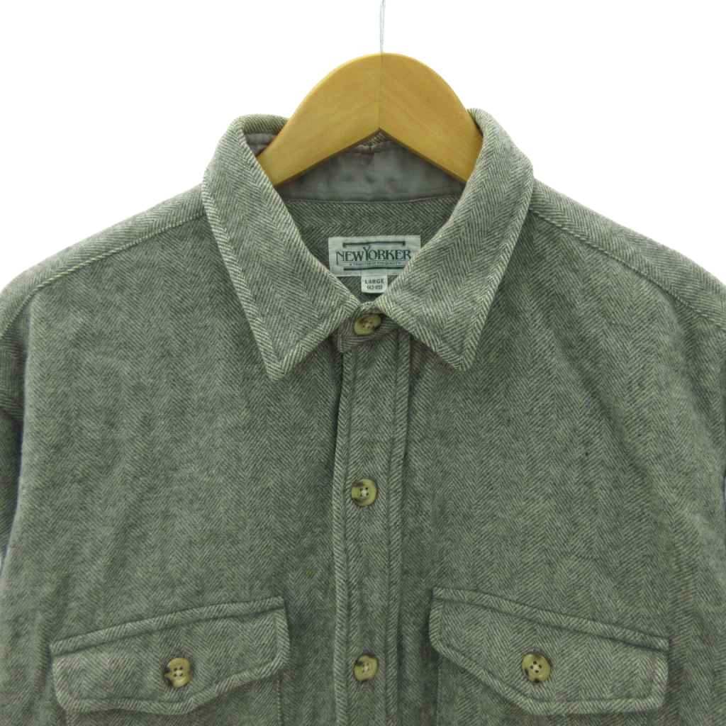 ニューヨーカー NEWYORKER シャツジャケット ヘリンボーン 長袖 L グレー 0830 メンズ