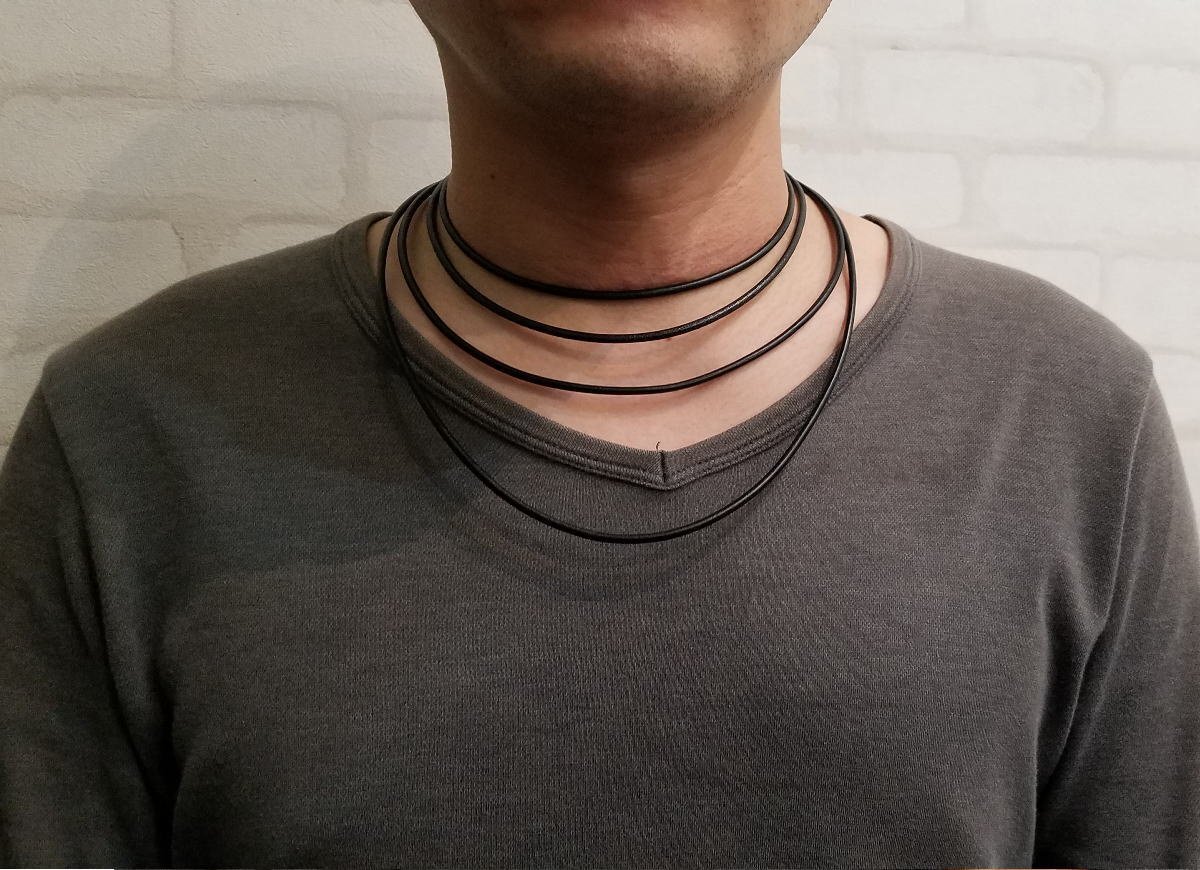 イタリアから取り寄せた上質な牛革を丸紐加工しネックレスに仕立てました。