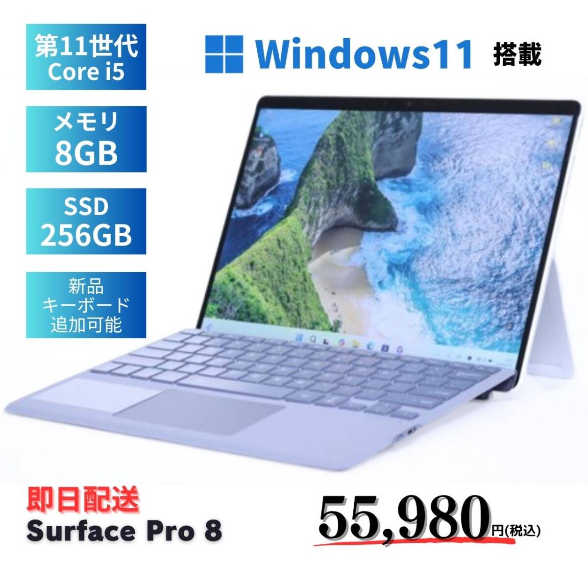 【メーカー】Microsoft ノートパソコン タブレットPC 【型番/品名】Surface Pro 8 8PR-00042 プラチナ 【CPU】Core i5-1145G7 2.60GHz / 4コア8スレッド / ターボ・ブースト最大4.40GHz 【メモリ】8GB 【ストレージ】SSD 256GB NVMe 【ディスプレイ】13.0インチ PixelSense Flow タッチパネル 解像度 2880x1920 ※カテゴリ--13.0~13.9インチ 【グラフィック】Intel(R)内蔵グラフィックス 【光学ドライブ】- 【サウンド】Dolby Atmos オーディオ搭載 2W ステレオ スピーカー 【センサー】加速度計、ジャイロスコープ、磁力計、光センサー 【Webカメラ】搭載 【無線LAN】Wi-Fi 6(IEEE802.11ax)対応 【その他装備】Bluetooth、顔認証 (※その他インターフェースは画像とメーカーページ等でご確認ください。) 【オプション】※画像のタイプカバーキーボードはオプション品。 ・ご希望の場合、別途6,380円(税込)にて同梱可能。 ※英字キーボード(日本語入力可)、Bluetooth接続、充電式(Surface本体より給電)、純正同様マグネット装着、設定説明書付属 【OS】Windows11Pro-64bit(DtoDリカバリ有) 【Officeソフト】アプリ無し(Microsoft Web版Officeご利用可) 【ウイルス対策】Windows Defender、Windowsファイアウォール 【寸法/質量】幅:287mm/奥行き:208mm/高さ:9.3mm/重量:約891g(本体のみ)(仕様・構成により変動する場合あり) 【付属品】ACアダプタ 【メーカーページ】(スペック完全一致でない場合あり) https://support.microsoft.com/ja-jp/surface/surface-pro-8-%E3%81%AE%E6%A9%9F%E8%83%BD-80d10ad3-52c1-4ded-a3be-ede236b9de93 【取扱説明書】(機種・型番完全一致でない場合あり)。 https://support.microsoft.com/ja-jp/surface-pro
