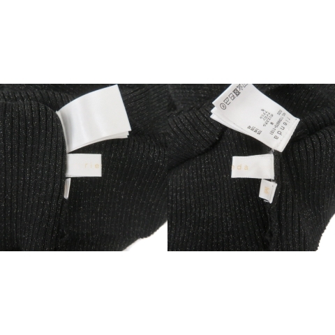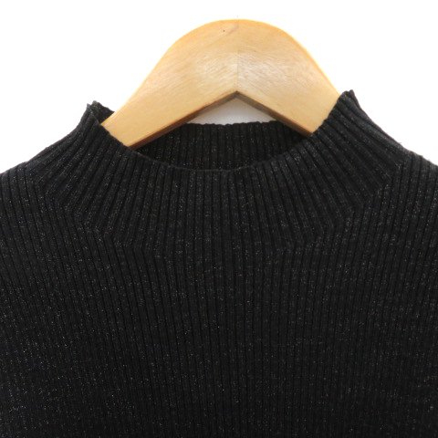 リエンダ rienda ニット カットソー 長袖 ハイネック ラメ M 黒 ブラック /YK36 レディース