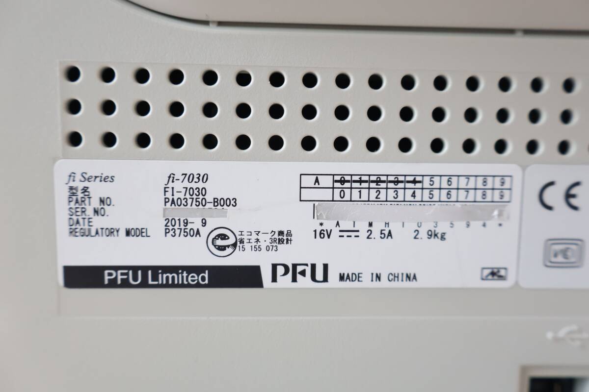 G9855 P 完動美品 2019年製 Fujitsu fi-7030 A4 ADF ドキュメントスキャナー ACアダプター付属 正常動作確認済み 16V 2.5A