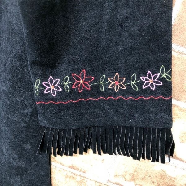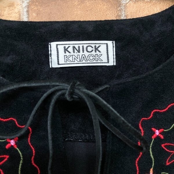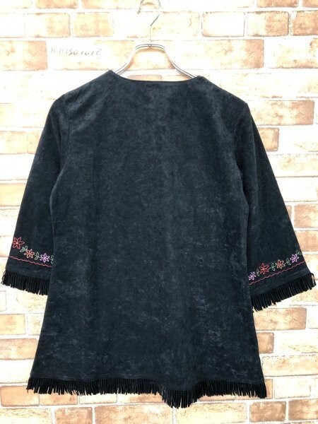 KNICK KNACK レディース 花刺繍 スエード調 フリンジ付き 七分袖 チュニック M 黒