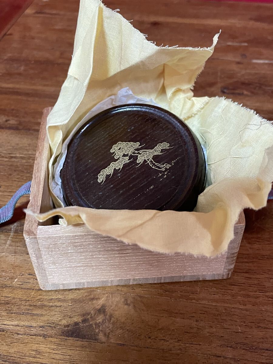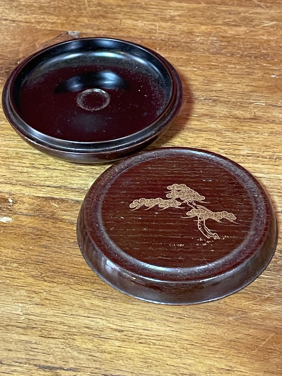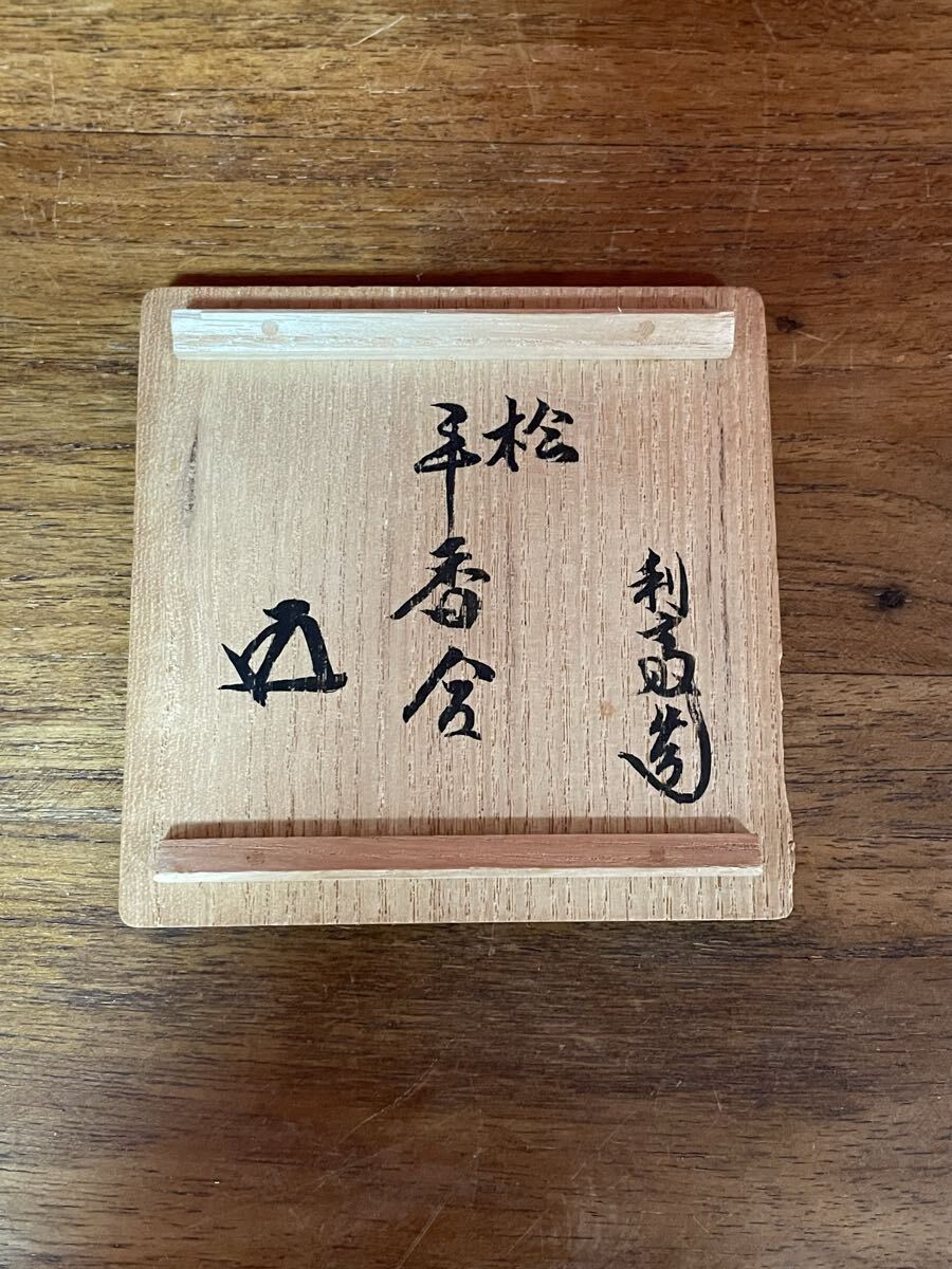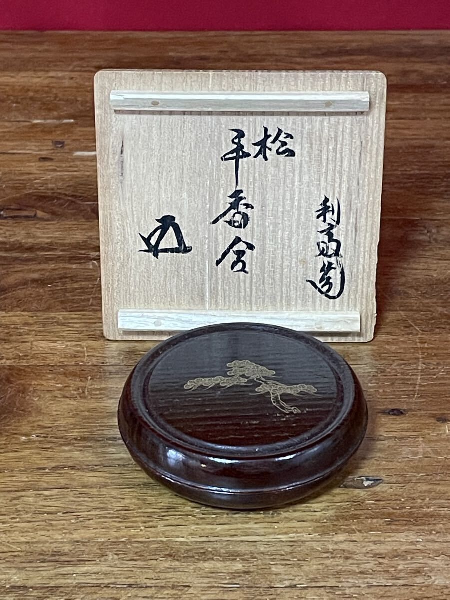 駒沢利斎の香合は大変人気で高額で取引されております。こちらの作品は利斎らしい素晴らしい平香合だと思います。 大変軽く、松の蒔絵もしっとりと落ち着いております。裏千家十五代鵬雲斎の書付で御道具としてもこの上ないものとなっております。