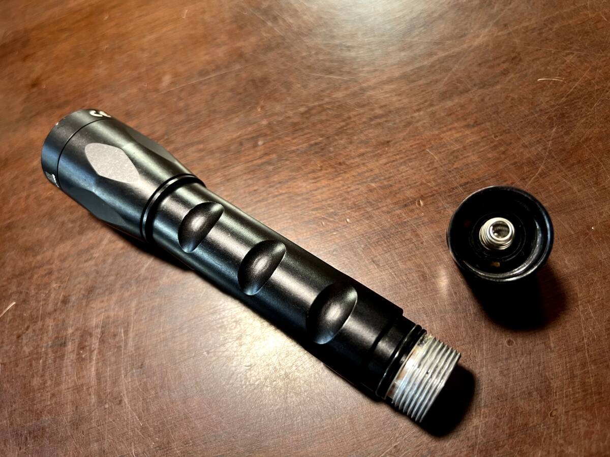 バッテリーを3つ使用するタイプで、テールスイッチで15ルーメンと1000ルーメンの切り換えが可能。