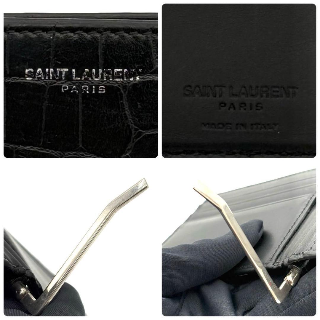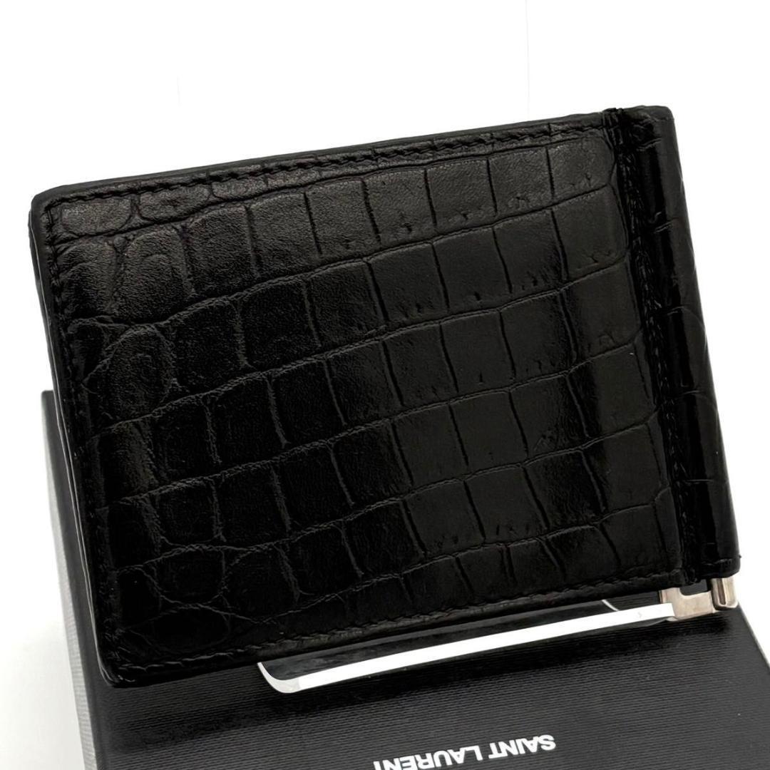 Saint Laurent サンローラン お札入れ マネークリップ お札入れ クロコ型押し 黒 ブラック 正規品 メンズ ウォレット wallet 2255