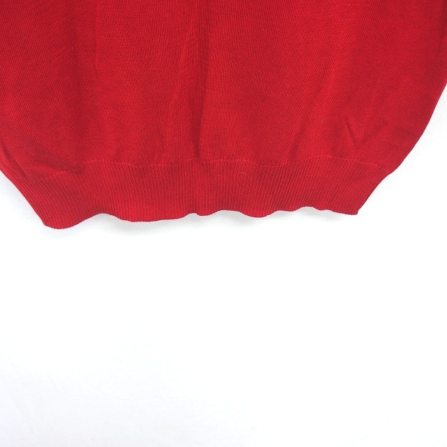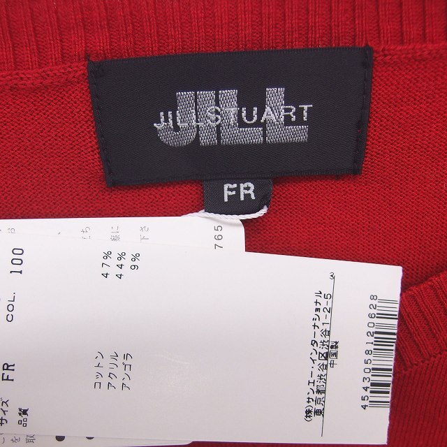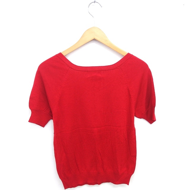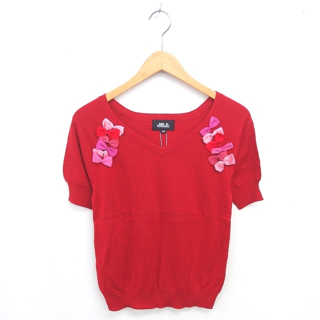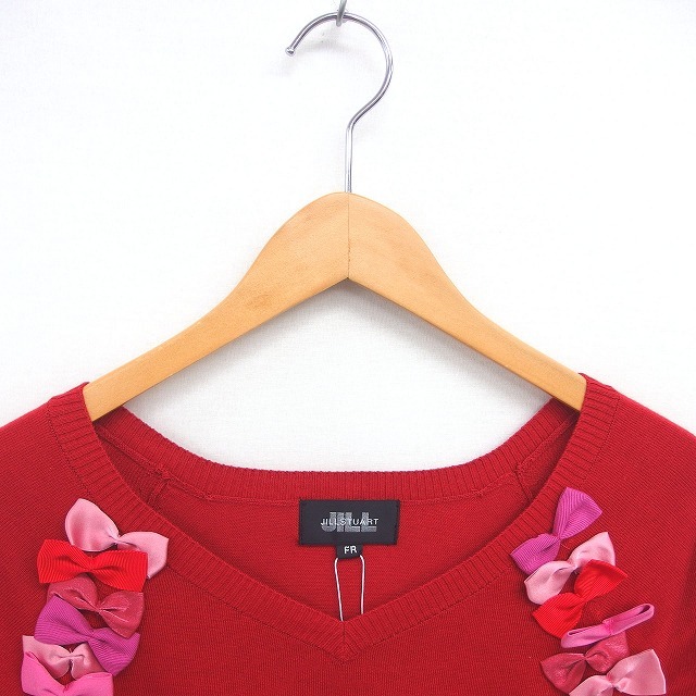 未使用品 ジルスチュアート JILL STUART タグ付き ニット セーター 浅めVネック リボン リブ袖 半袖 FR 赤 レッド /TT14 レディース