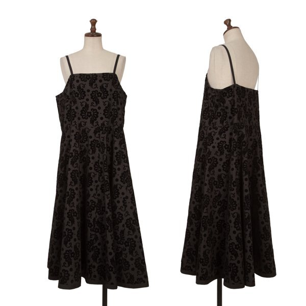 | トリココムデギャルソンtricot COMME des GARCONS アラベスクフロッキーコットンフレアキャミワンピース 黒M |