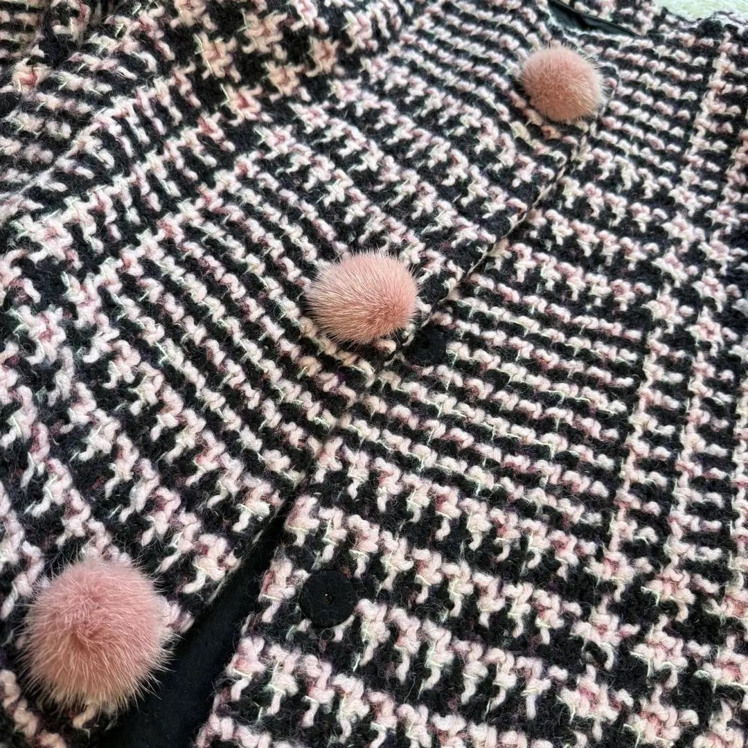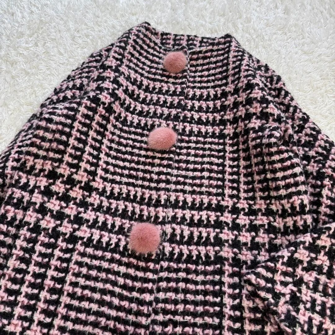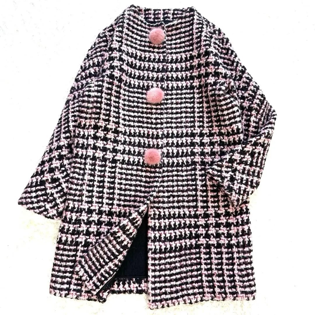 超希少★ERMANNO SCERVINO★ミンクファーぽんぽん付★ツイードコート