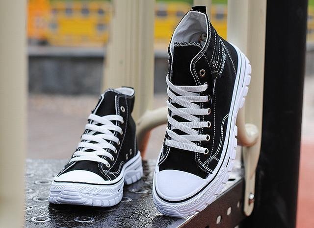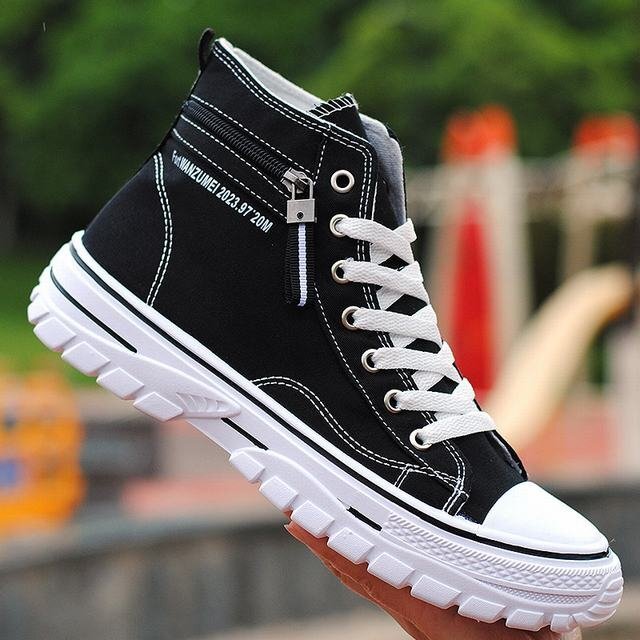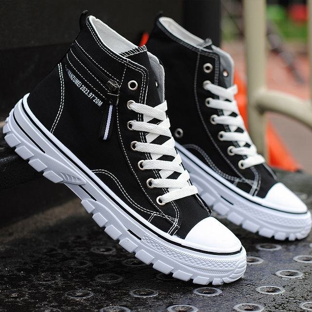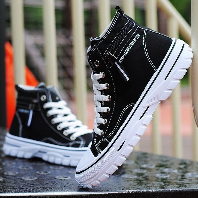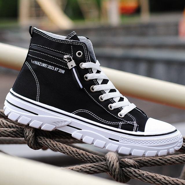 キャンバス スニーカー ハイカット メンズ レースアップ 靴 シューズ 歩きやすい カジュアルシューズ 厚底 ブラック 27cm