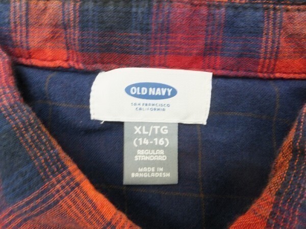 OLD NAVY オールドネイビー キッズ チェック柄 ガーゼシャツ XL(14-16) 赤紺オレンジ です。
