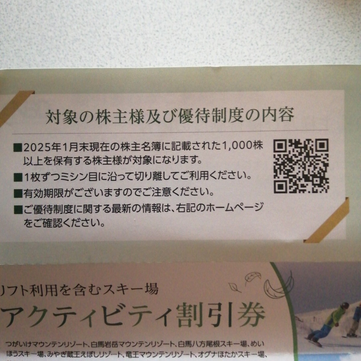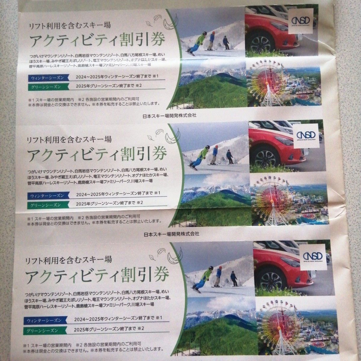 日本駐車場開発 日本スキー場開発 株主優待券 アクティビティ割引券3枚セット