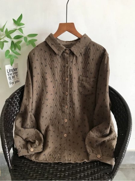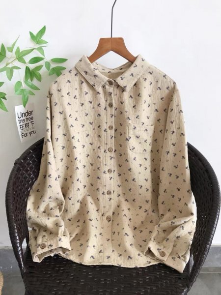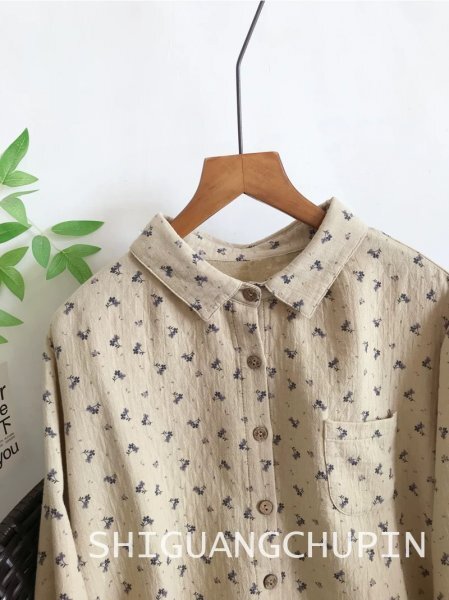 sg 2509チュニック ワイシャツ 綿100% ゆったり オシャレ フリーサイズ ナチュラル 前開け 花柄2
