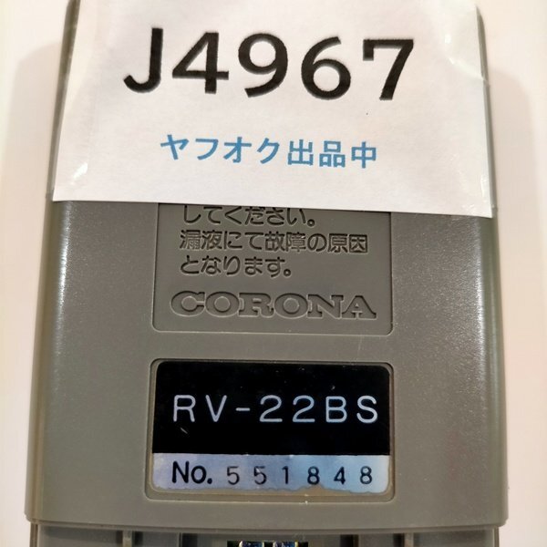 J4967◆コロナ電業 エアコンリモコン RV-22BS(ク)