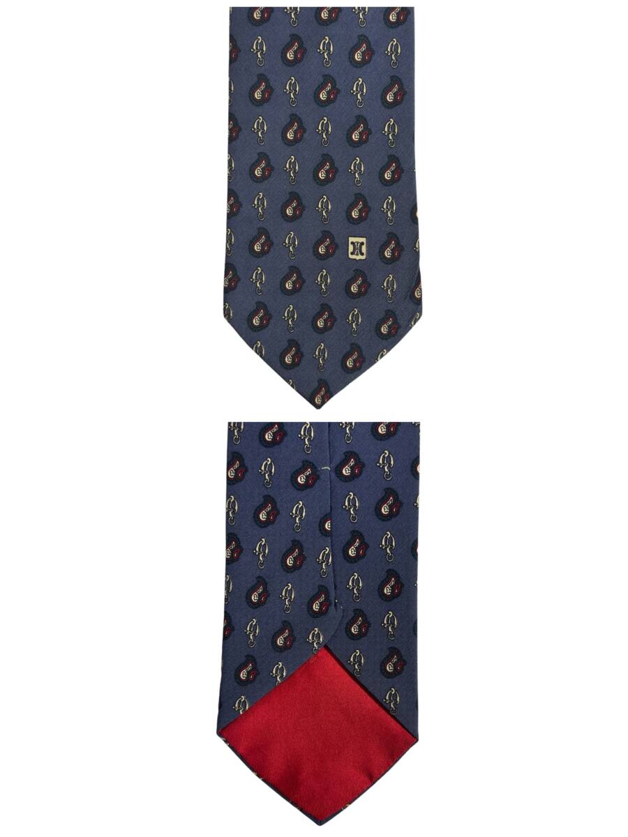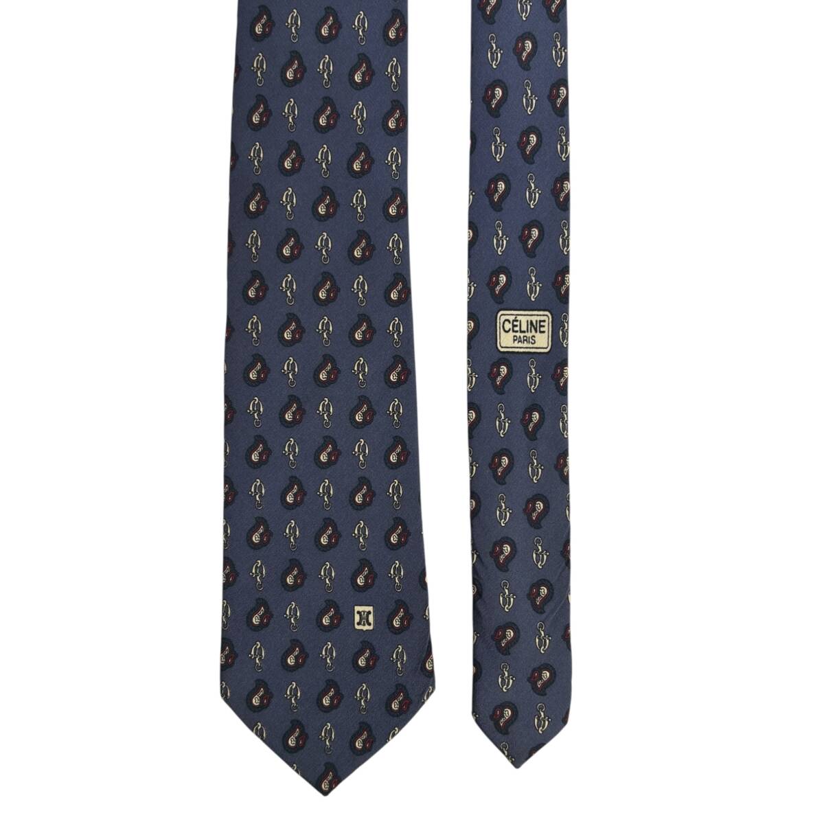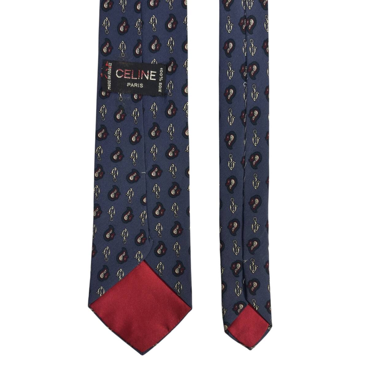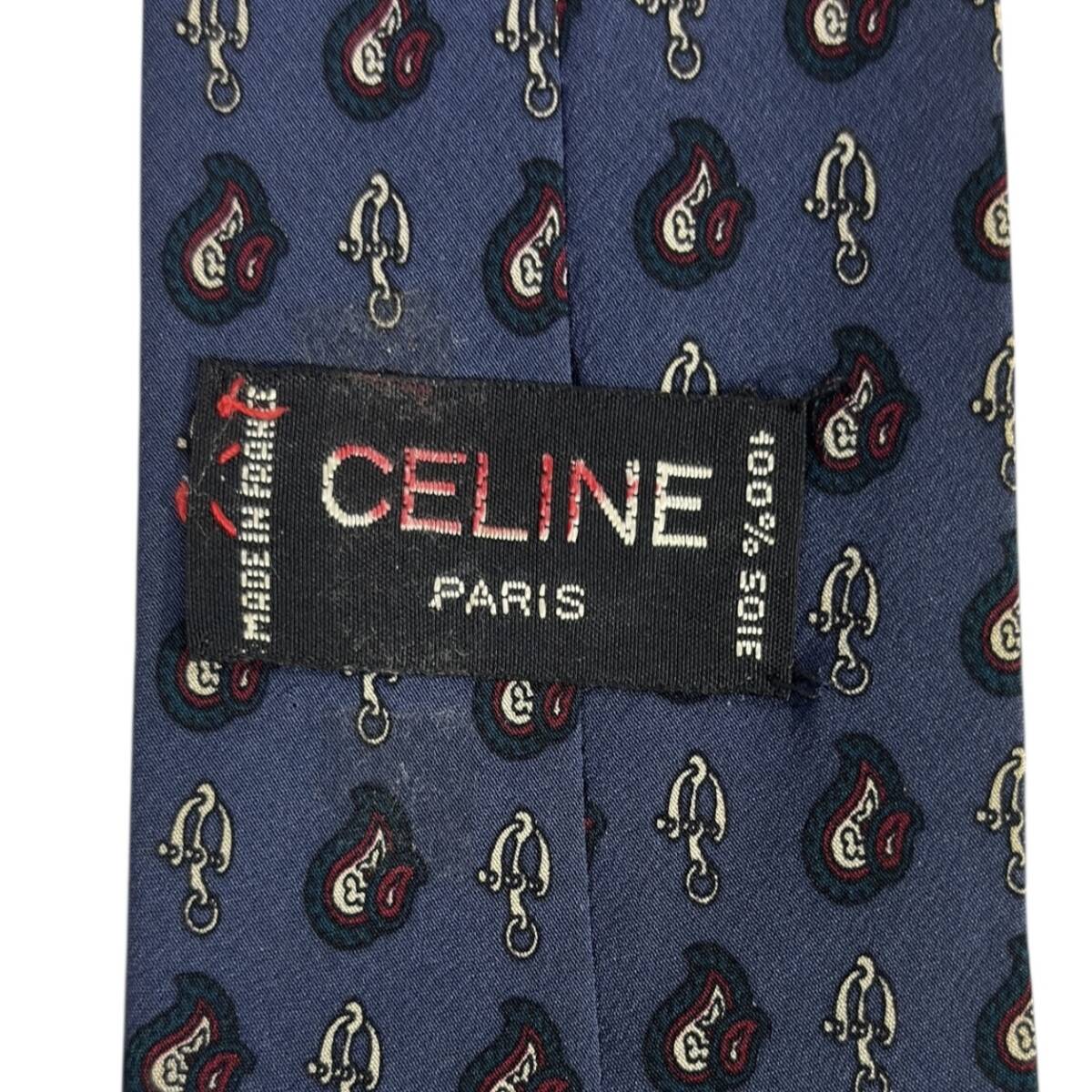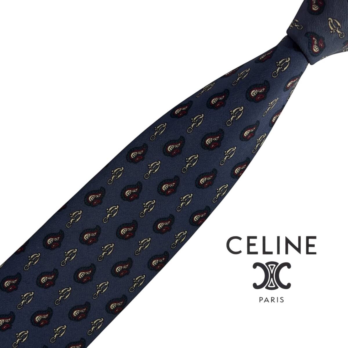 ◆細め◆ペイズリー&馬具柄◆CELINE◆高級SILK ネクタイ SPAIN製 パターン柄 総柄 セリーヌ USED N104