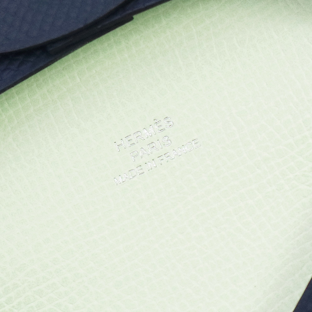 (新品・未使用品)エルメス HERMES バスティア GM ヴェルソ コインケース 小銭入れ 財布 エプソン レザー ネイビー ライトグリーン W刻印