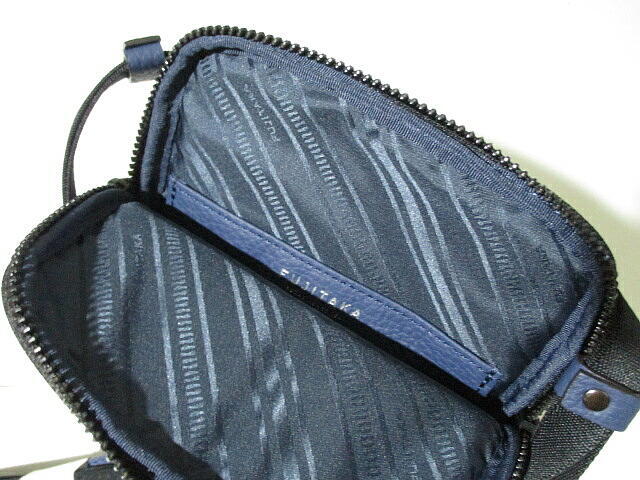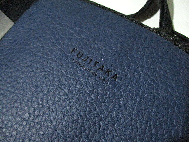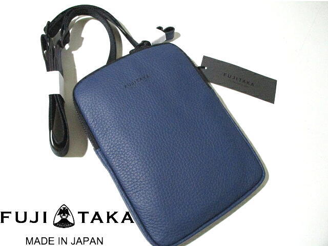 日本製■ 新品 未使用  フジタカ 牛革 レザー ショルダーバッグ サコッシュ 紺 ネイビー FUJITAKA 鞄 本革 職人