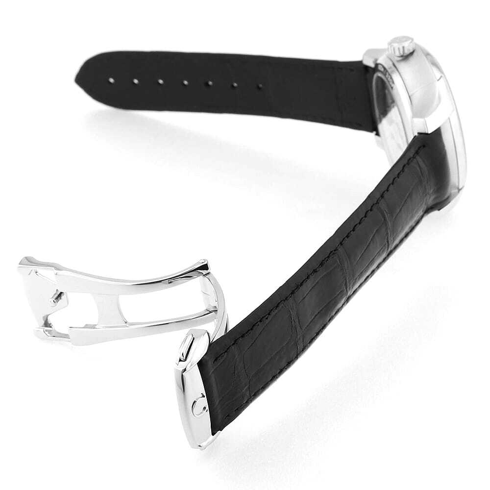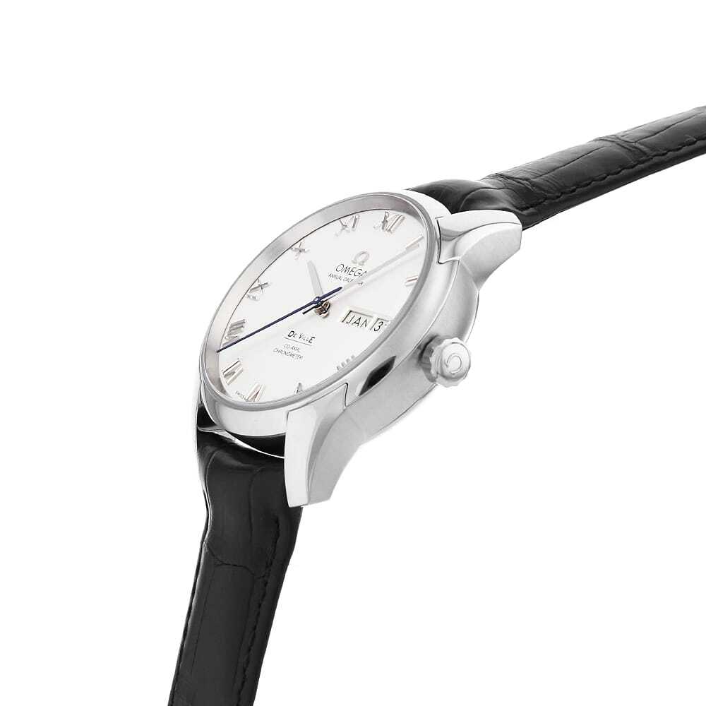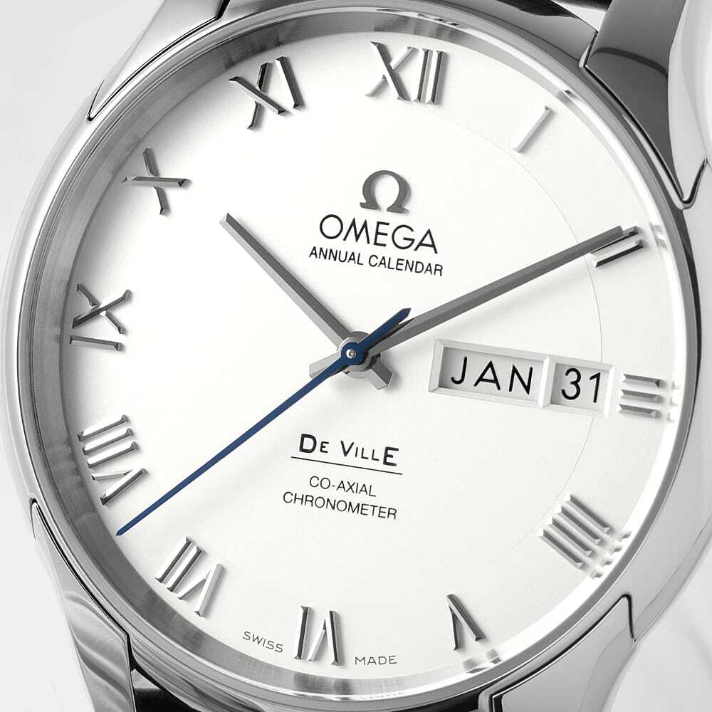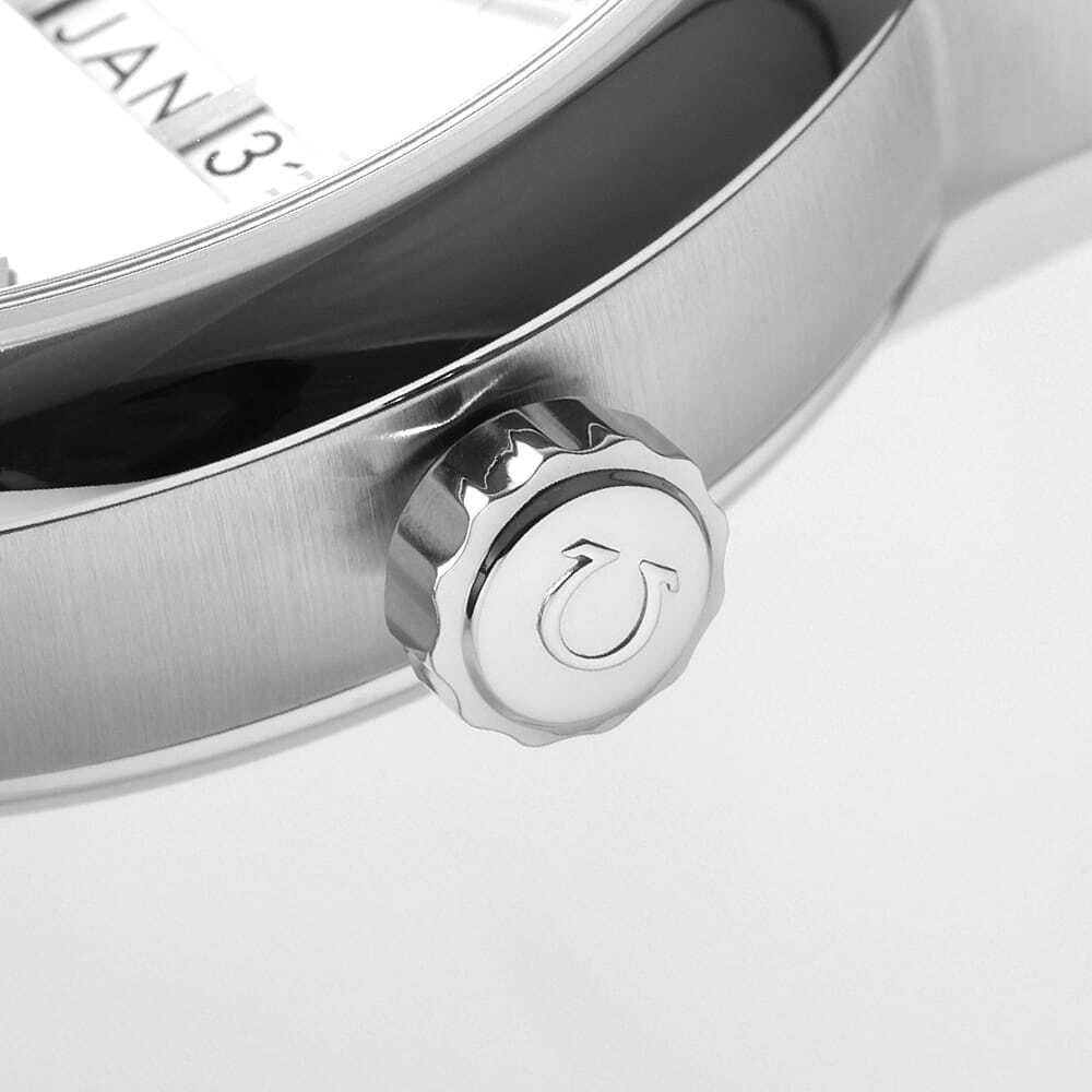 モデル情報 | 41mmのステンレススティールケースに、ブラックのレザーストラップを組み合わせたこのモデルは、フォーマルな場面にもふさわしい上品な1本です。文字盤には、ローマ数字のインデックスと、3時位置に月と日付の表示窓を備えた「アニュアルカレンダー」機能が搭載されています。クラシカルなデザインと実用性を兼ね備えたモデルであり、ビジネスシーンからプライベートまで幅広く活躍します。オメガの伝統と革新が息づく、タイムレスな魅力を持つ時計です。 |