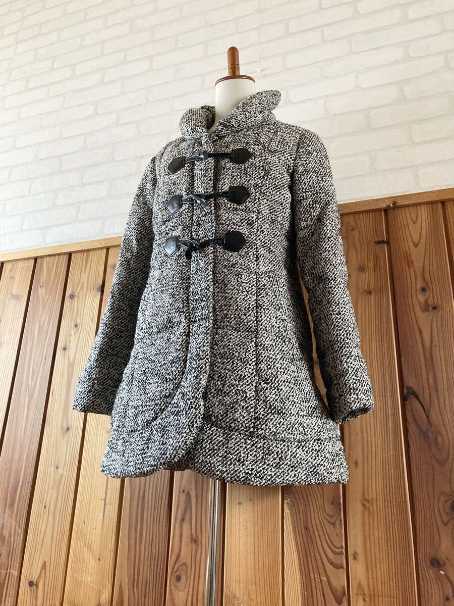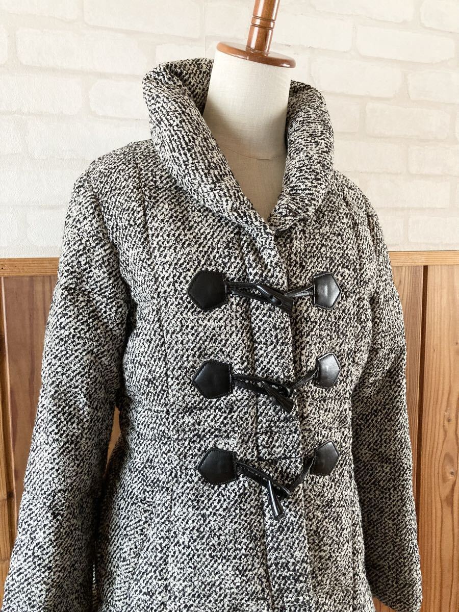 こちら、フロントはボタン&ダッフルボタンのダブル開閉タイプ、中綿はダウン70、フェザー30のレディースダウンコートです。