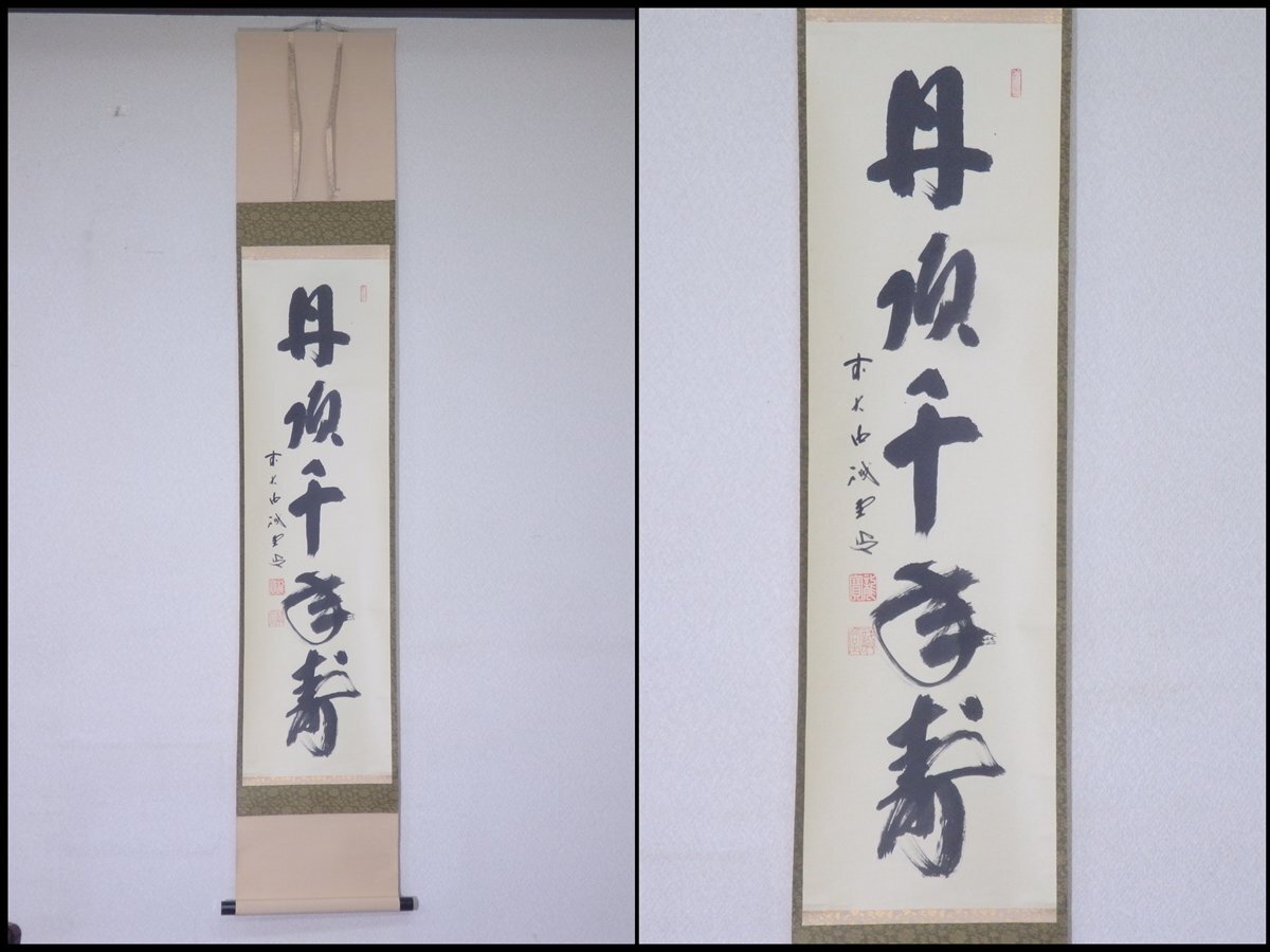 ★長寿を祝う 大徳寺 藤井誡堂和尚 肉筆【掛軸『丹頂千年寿』共箱】紙本 幅30.5×全長166.2cm 茶道具 一行書 茶掛け 敬老の日 セール!