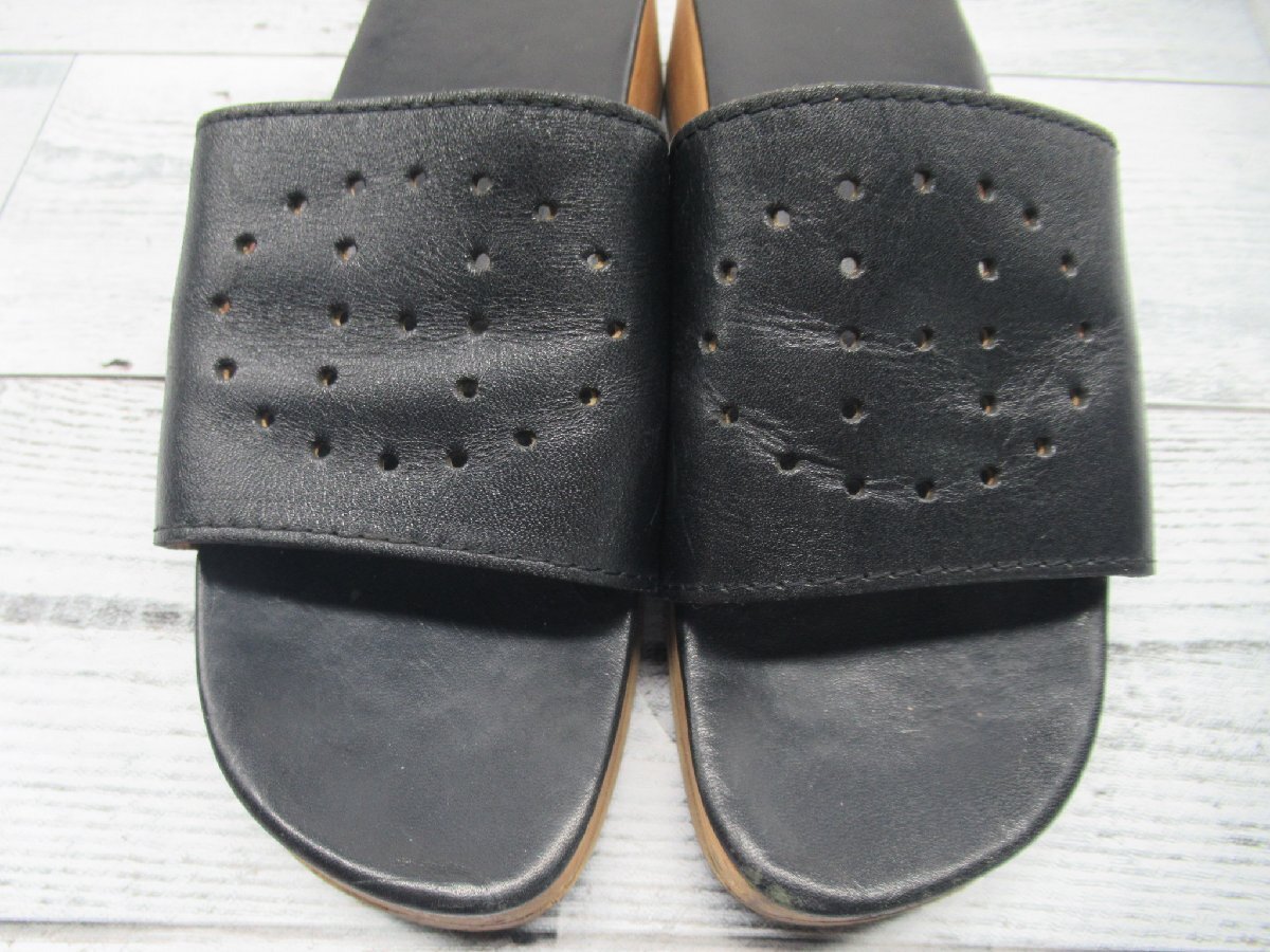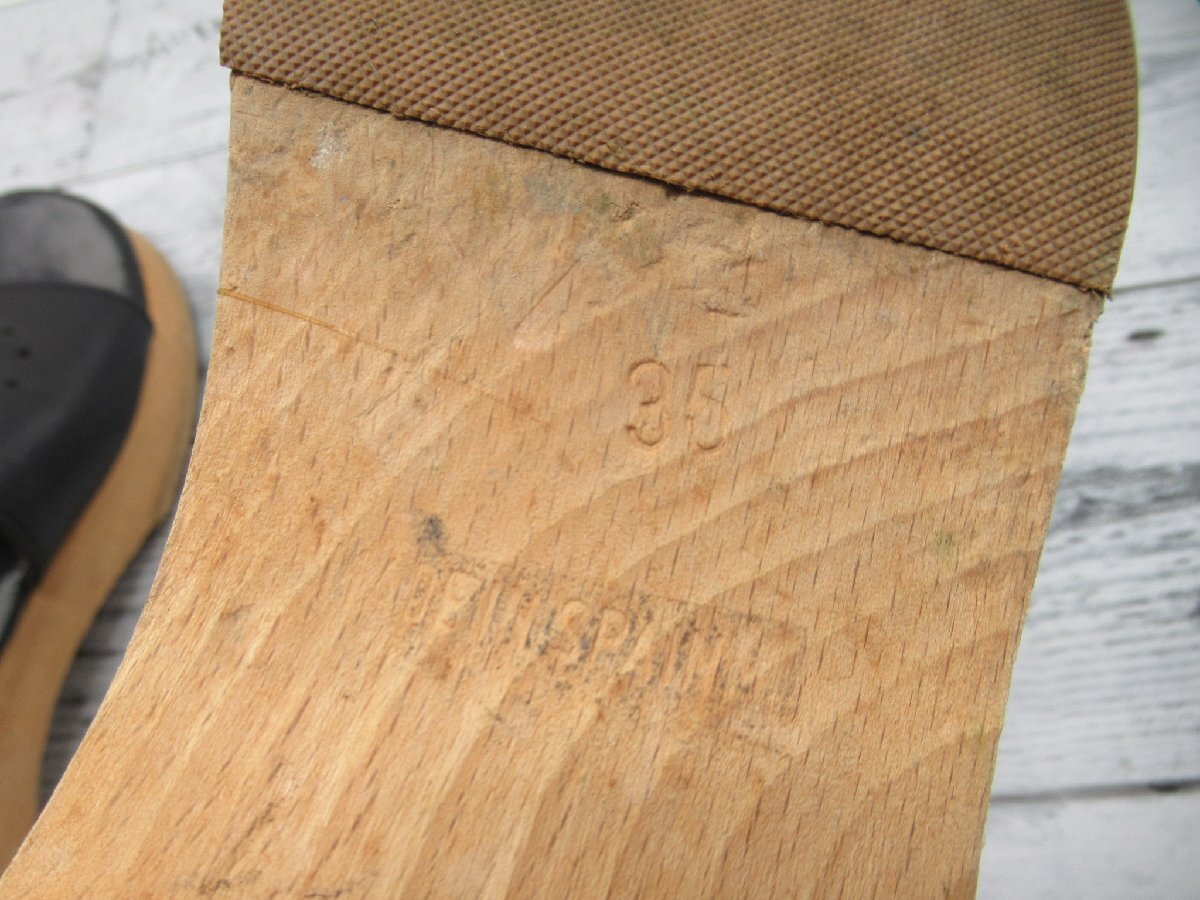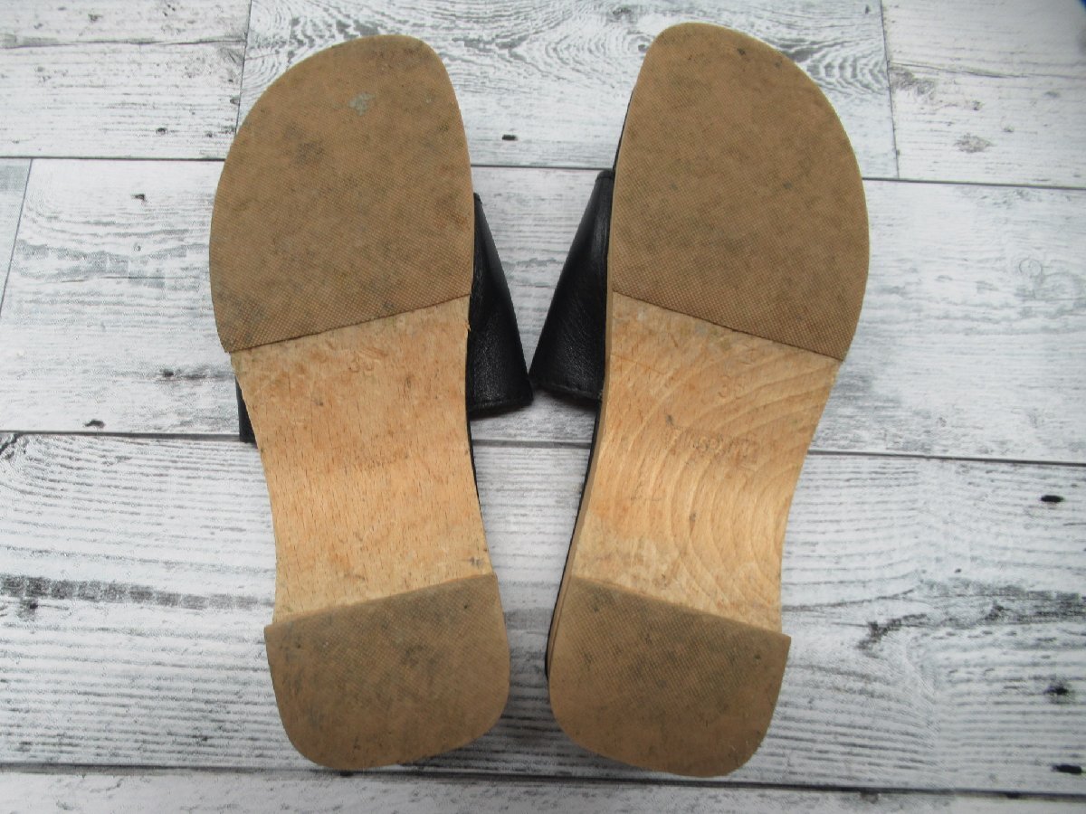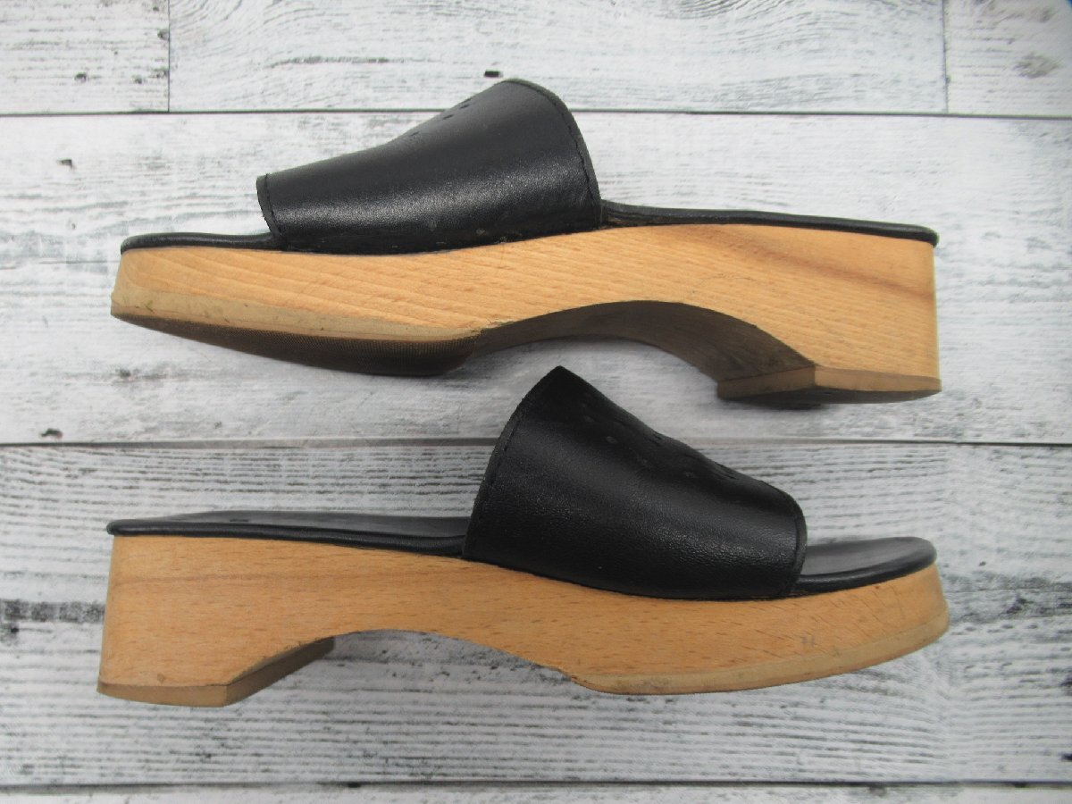 ★【B送900円】2348 HERMES エルメス レザーサンダル ミュール オープントゥ ブラック ウッドソール カットワーク 箱付き 35