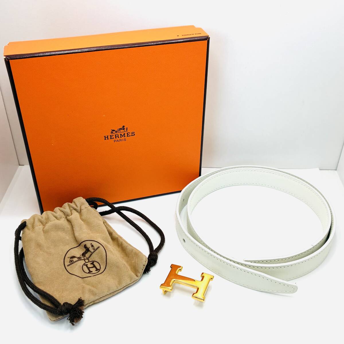 美品 HERMES エルメス Hベルト ゴールド金具 ホワイト系 A刻印 65 レディース 箱 保存袋付き