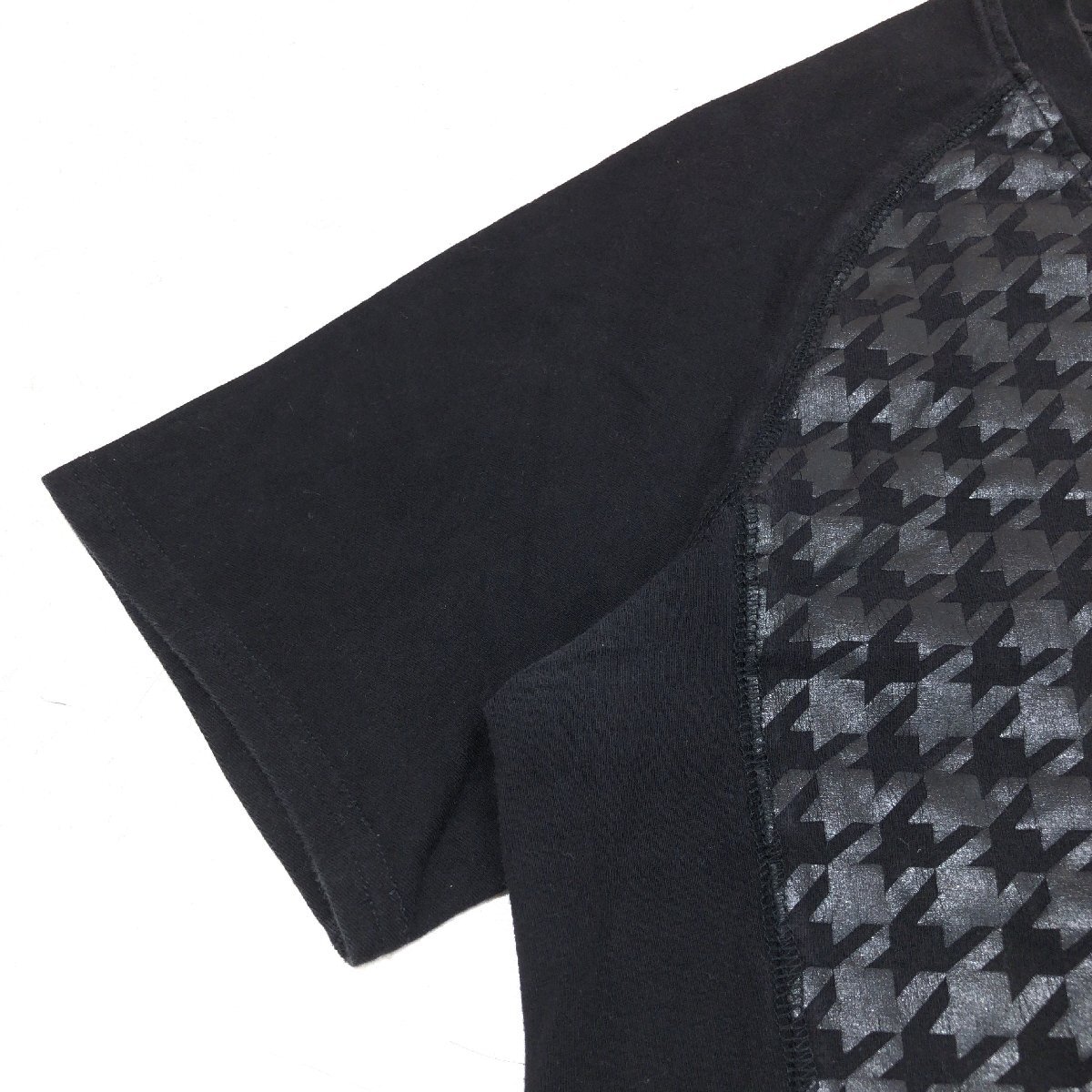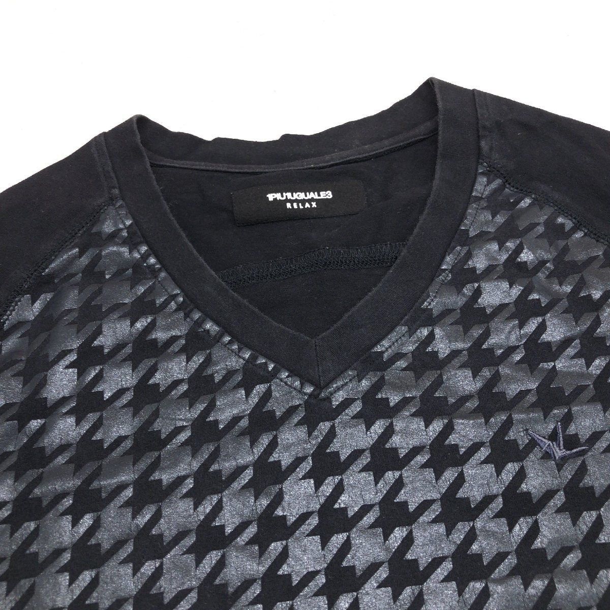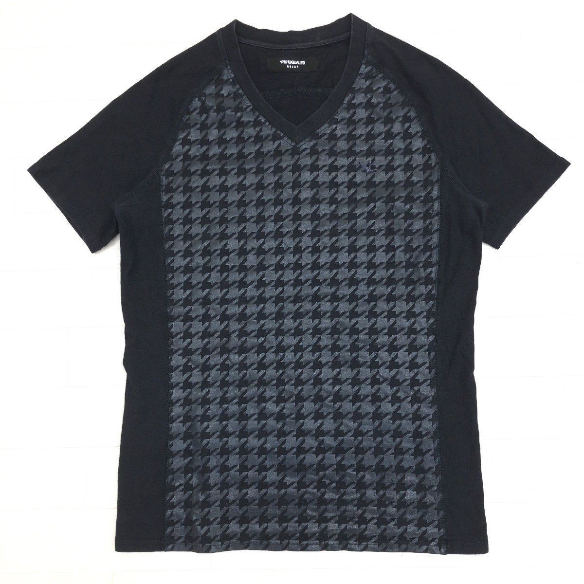 1piu1uguale3 RELAX ウノピゥウノウグァーレトレ 千鳥格子プリント Vネック Tシャツ M 黒 ブラック 半袖 国内正規品 メンズ 紳士