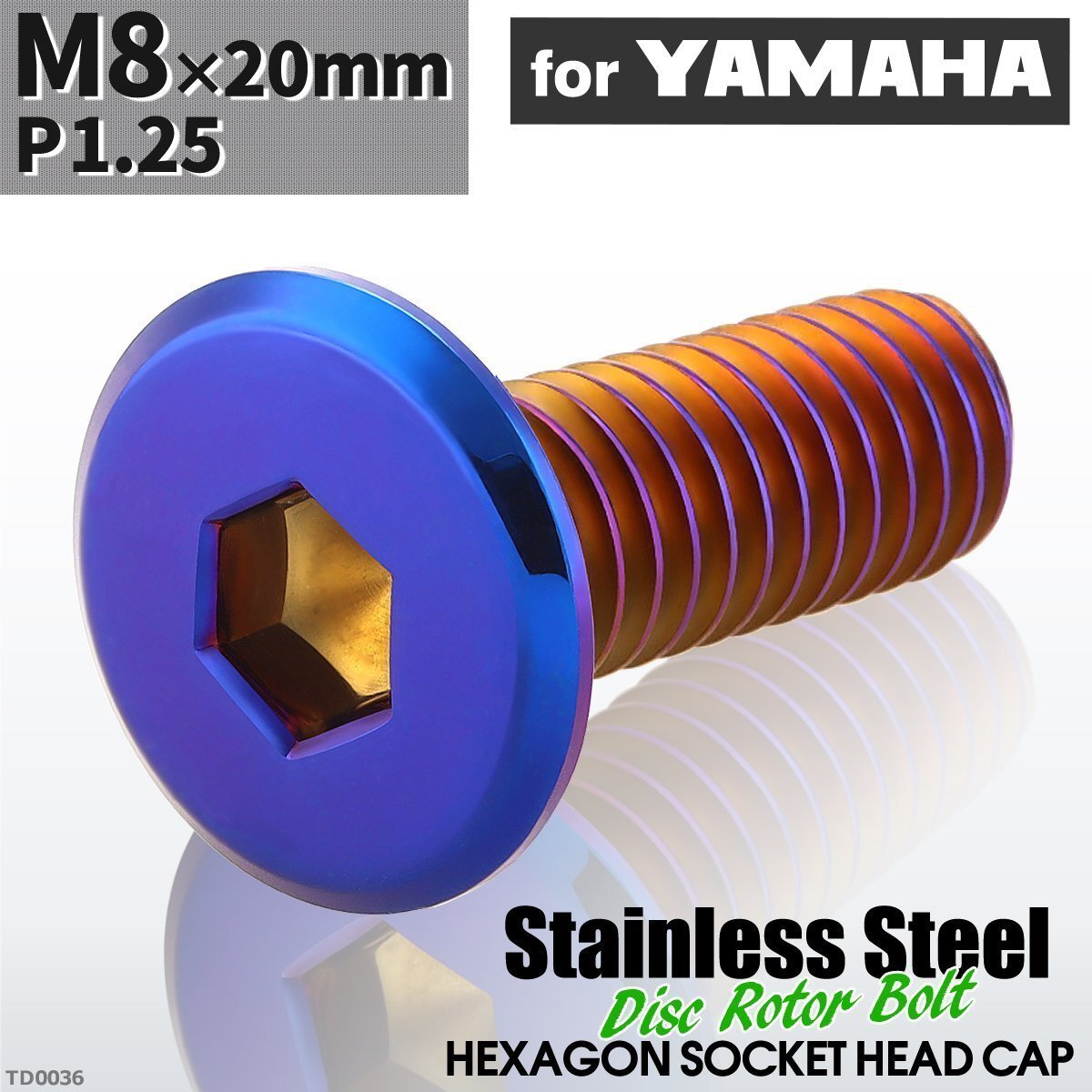 ブレーキディスク ローターボルト ヤマハ用 フラットヘッド 数量:1個売り 材質:ステンレス 頭部穴形状:六角穴付き 商品サイズ:M8×20mm P1.25(詳細は画像に掲載。各サイズは、平均値です。ロット差や個体差があります。) ネジの長さ:20mm(告知なしで変更の時あり、詳細のサイズが必要な場合は要問い合わせ) 適合車種:ヤマハ汎用。この形状は、ヤマハのバイクでよく使用されておりますが、他のボルトが使用されている場合がございます。サイズ等でご判断ください。なお、適合車種に関しての回答は致しておりません。 商品カラー:焼きチタンカラー ※個体差により着色が異なる場合があります。 ※サイズやカラーごとに価格が異なる為、購入後の商品の変更はできません。 また、ご購入数しかお取引ができません。 数量以上ご必要の場合は、ご入札前にご質問ください。 在庫がございましたら別途出品させていただきます。 |